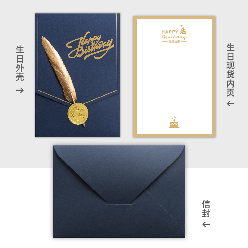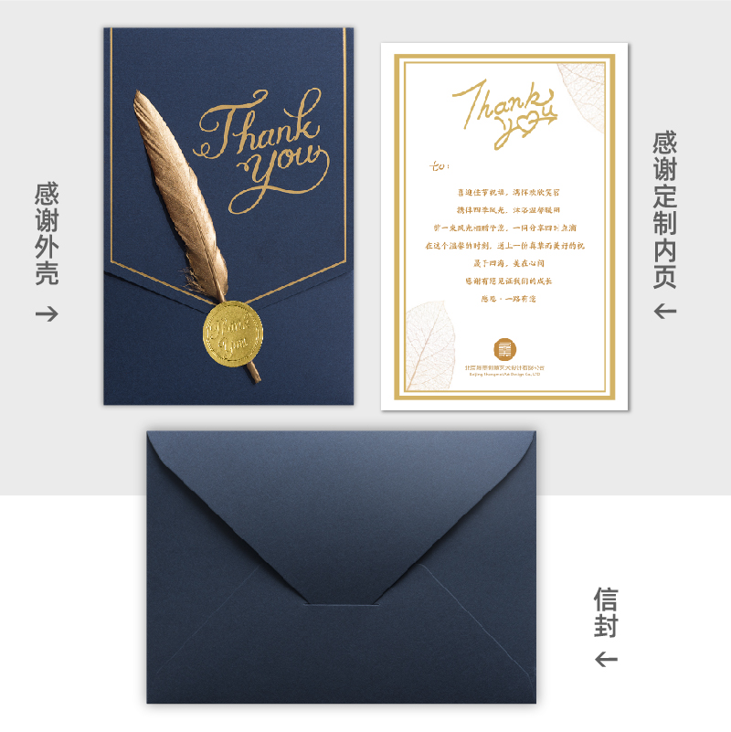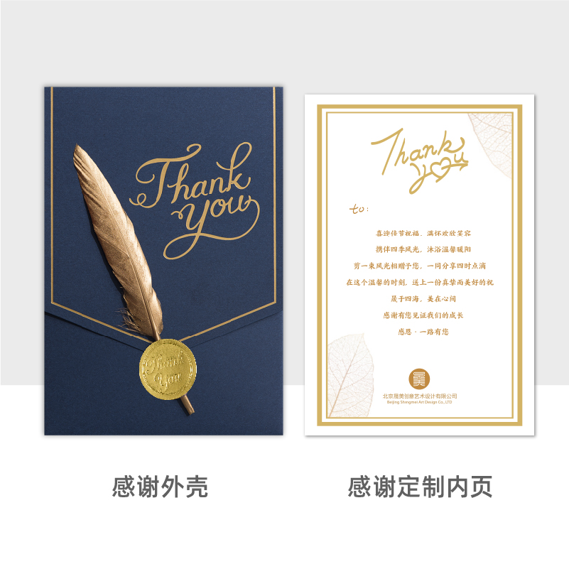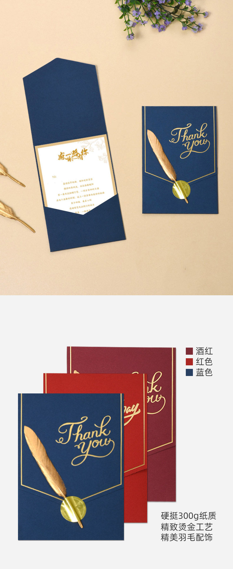 생일 인사말 카드 비즈니스 감사 카드 축복 직원 고급 감사 창조적 인 황금 깃털 더블 아홉 번째 축제 인사말 카드