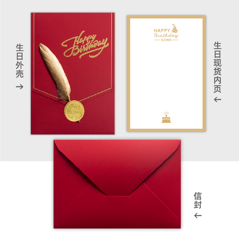 • 생일【dz】레드 카드 + 두꺼운 봉투, 최소 주문량 50개