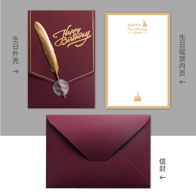 • 생일【dz】버건디 카드 + 두꺼운 봉투, 최소 주문량 50장