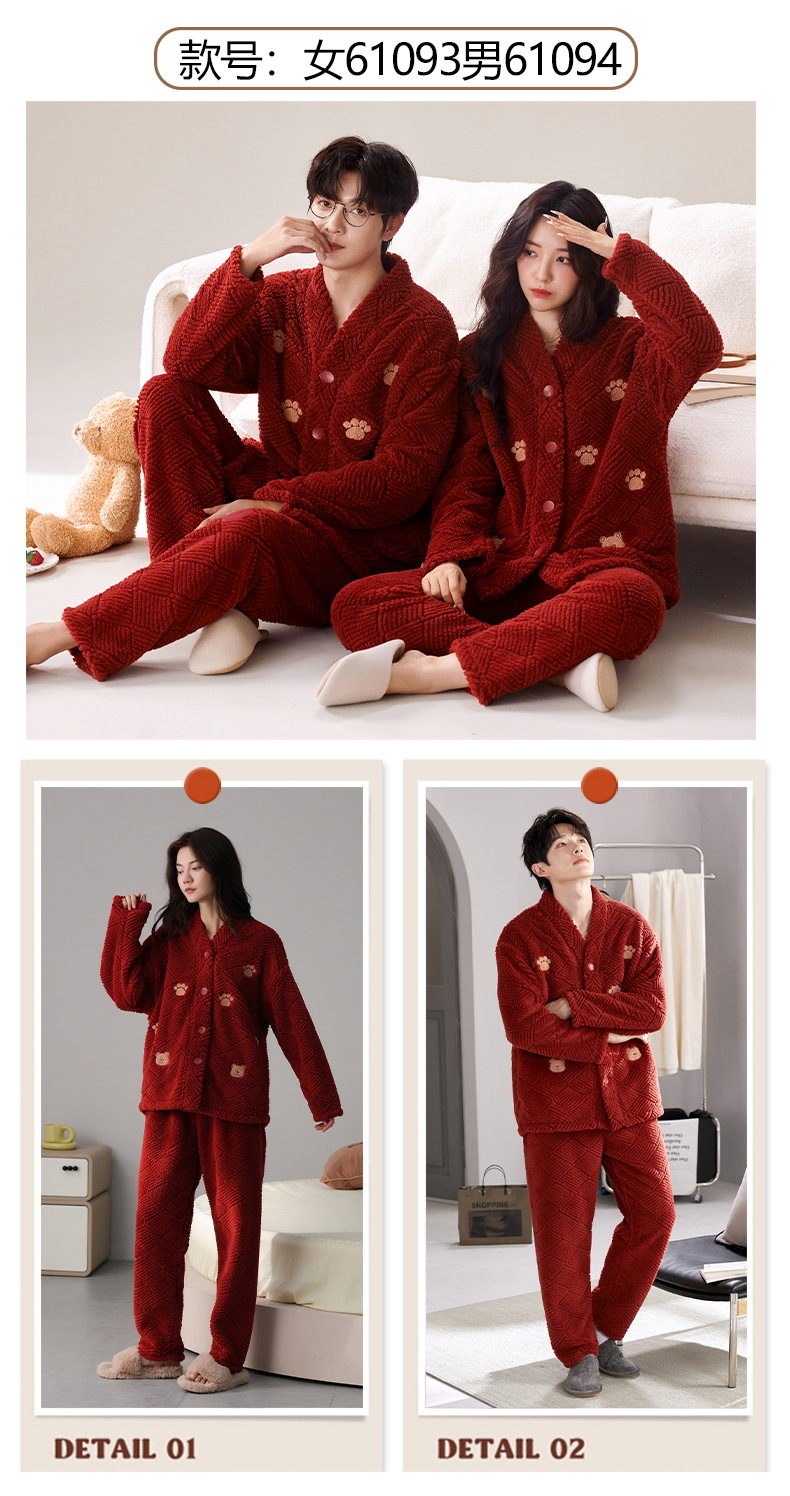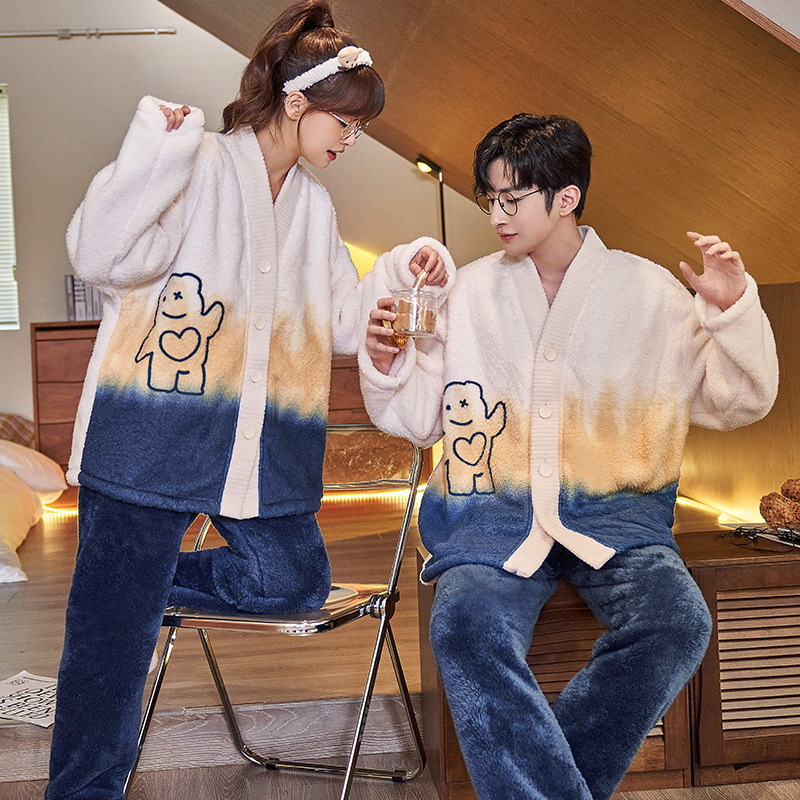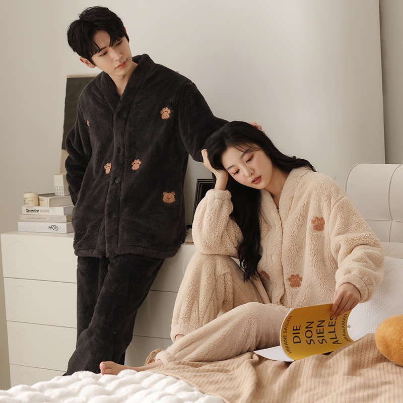 커플 잠옷 가을과 겨울 산호 벨벳 한 남자와 한 여자 기모 두꺼운 플란넬 겨울 카디건 홈 옷 세트스토어 가기