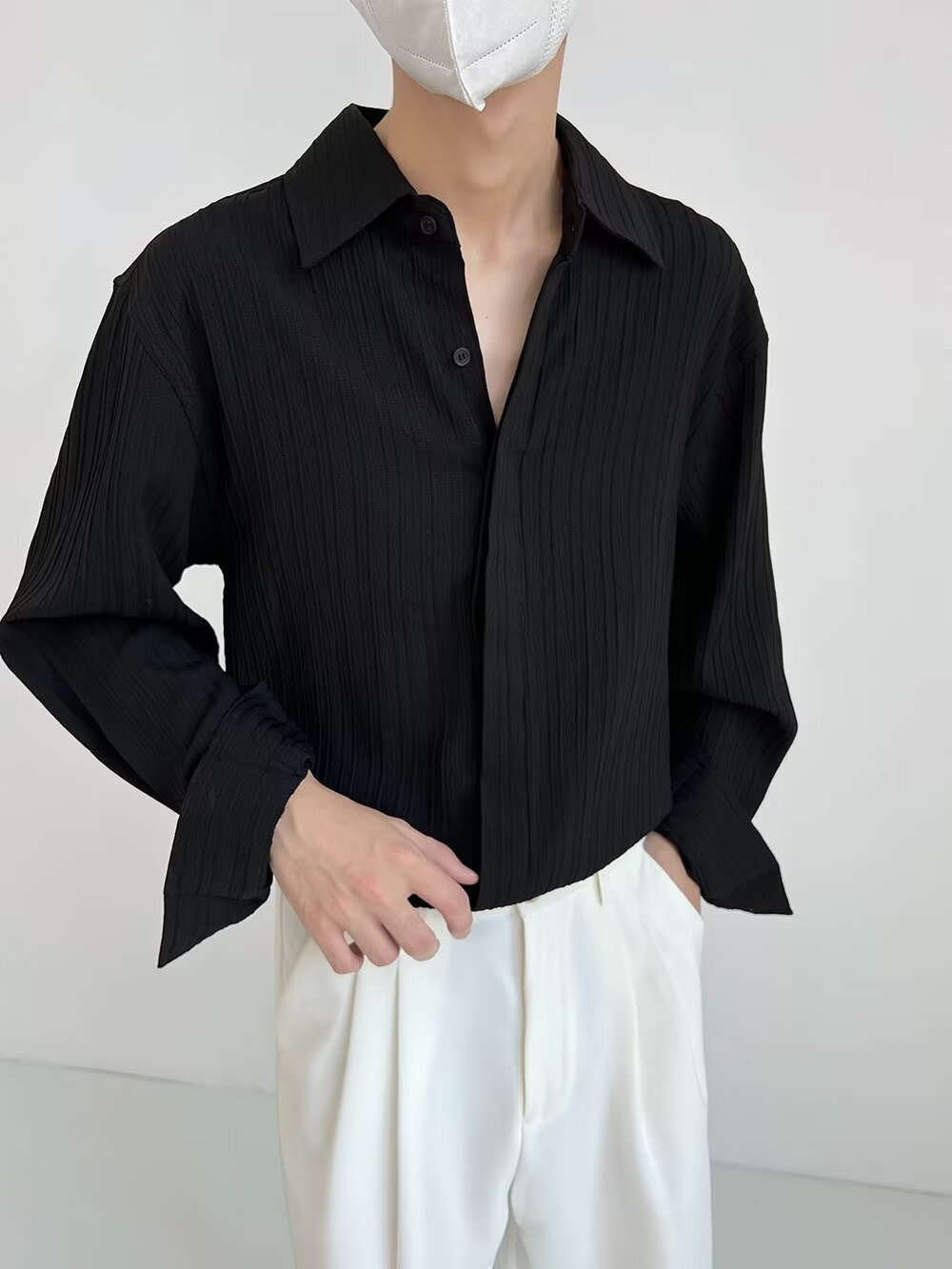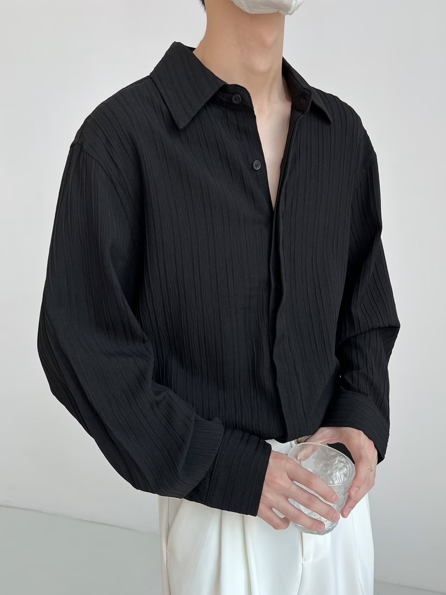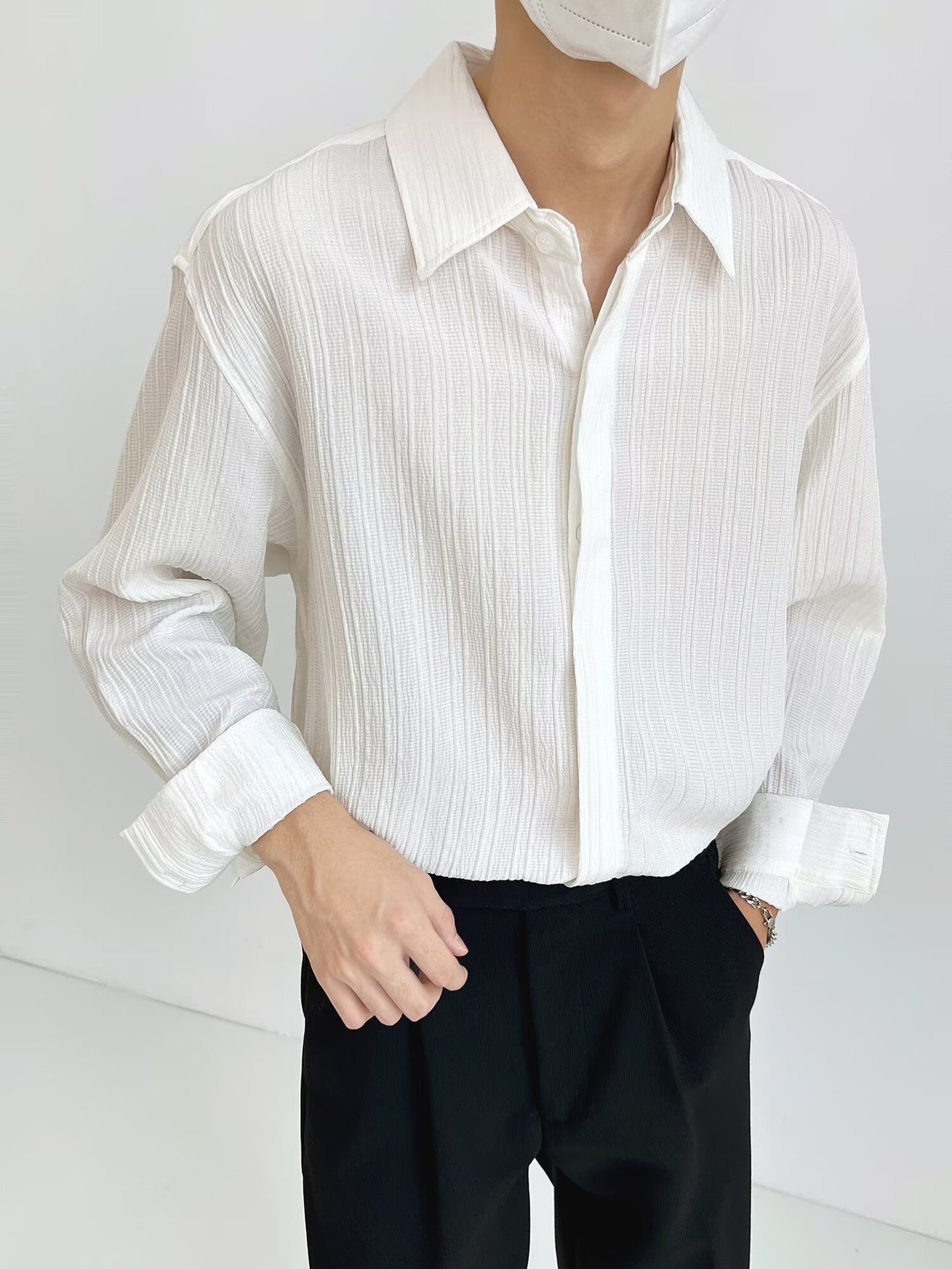 봄과 가을 긴 소매 셔츠 남자의 기질 복고풍 사업 한국 스타일 포장 된 단색 캐주얼 셔츠 남성 자켓