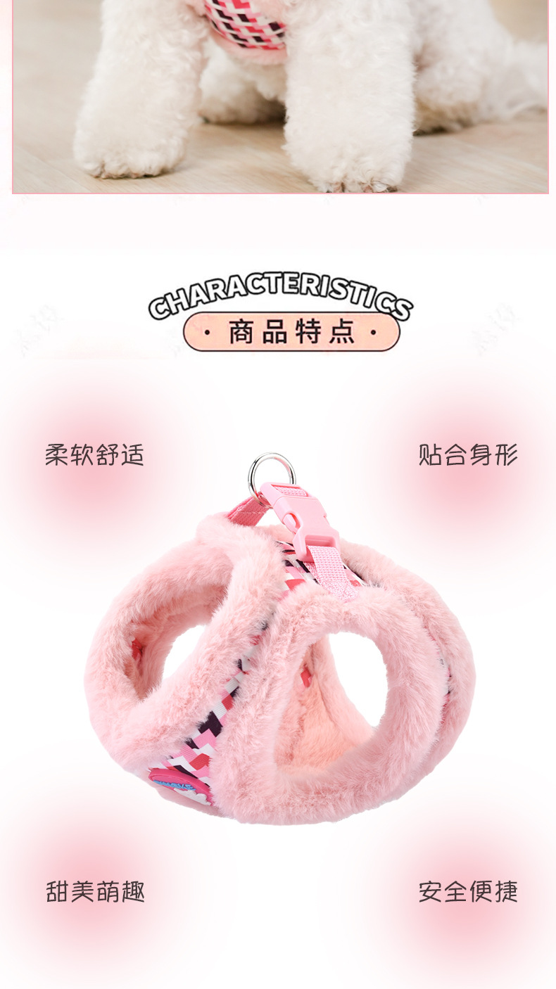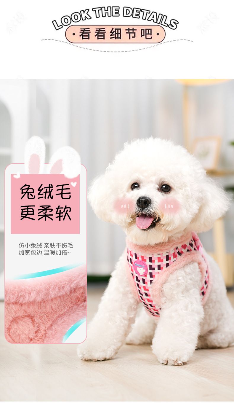 개 가죽 끈 조끼 사슴 개 테디 작은 개 고양이 가죽 끈 기모 가슴 끈 개 걷는 밧줄 겨울