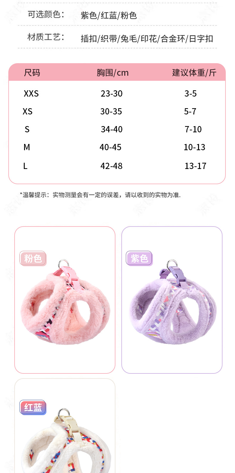 개 가죽 끈 조끼 사슴 개 테디 작은 개 고양이 가죽 끈 기모 가슴 끈 개 걷는 밧줄 겨울스토어 가기