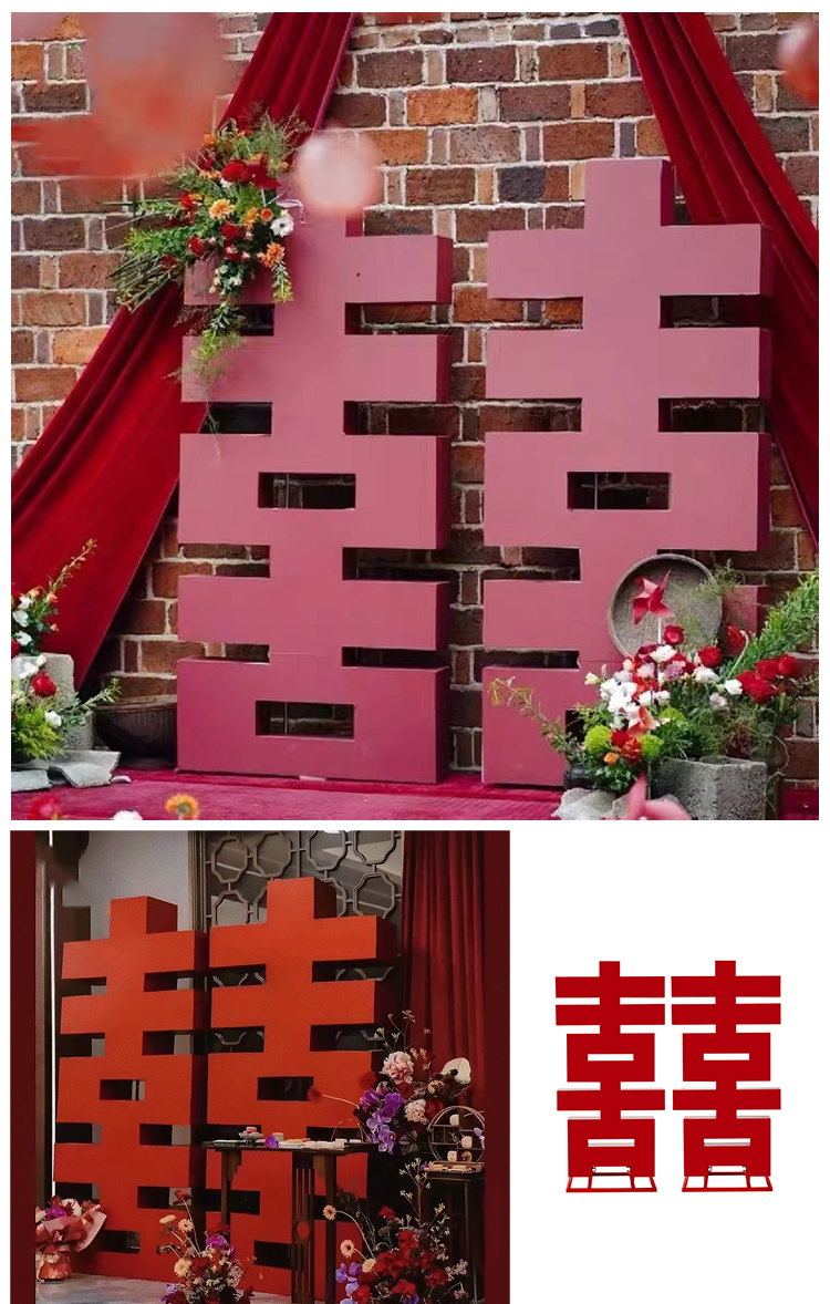 새로운 웨딩 소품 중국 스타일 빨간 해피 단어 레드 더블 행복 아이언 스크린 호텔 무대 장식품 웨딩 장식스토어 가기