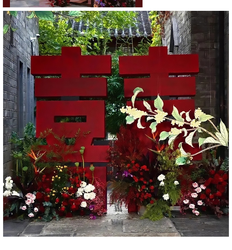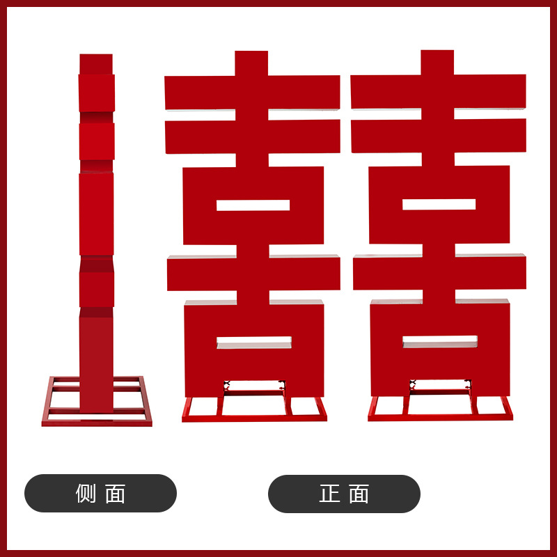 新款婚庆道具中国风红色喜字红双喜铁艺屏风酒店舞台摆件婚礼装饰