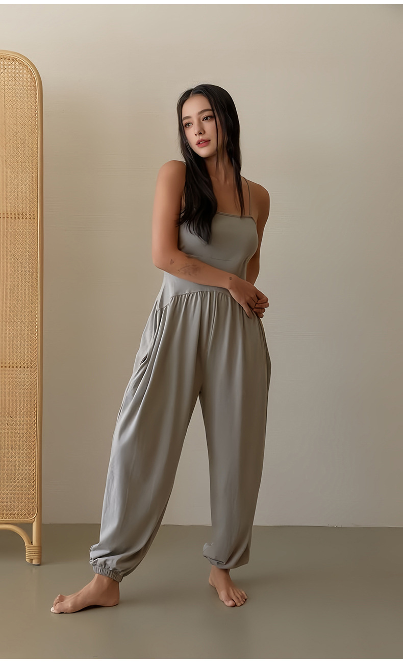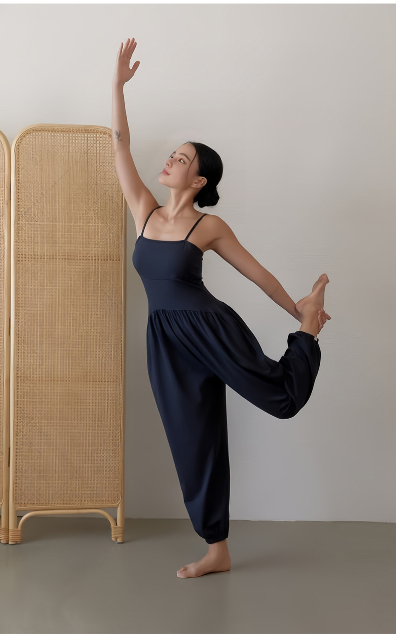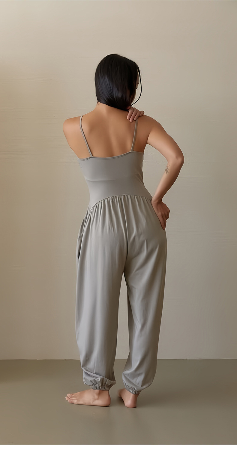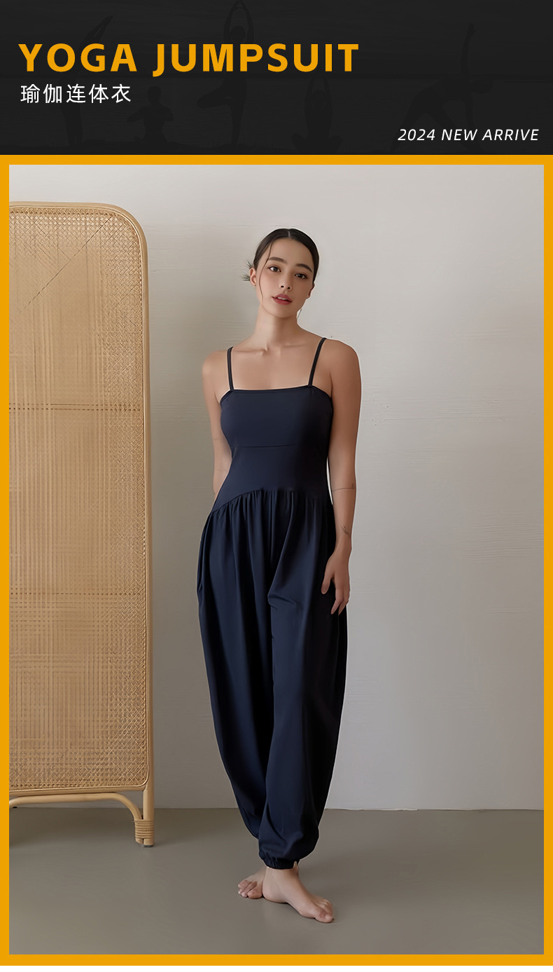 인쇄된 로고 사용자 정의 느슨한 민소매 서스펜더 오프 숄더 원피스 요가 바지 정장 요가 트레이닝 가슴 패드 여성용 올인원 의류