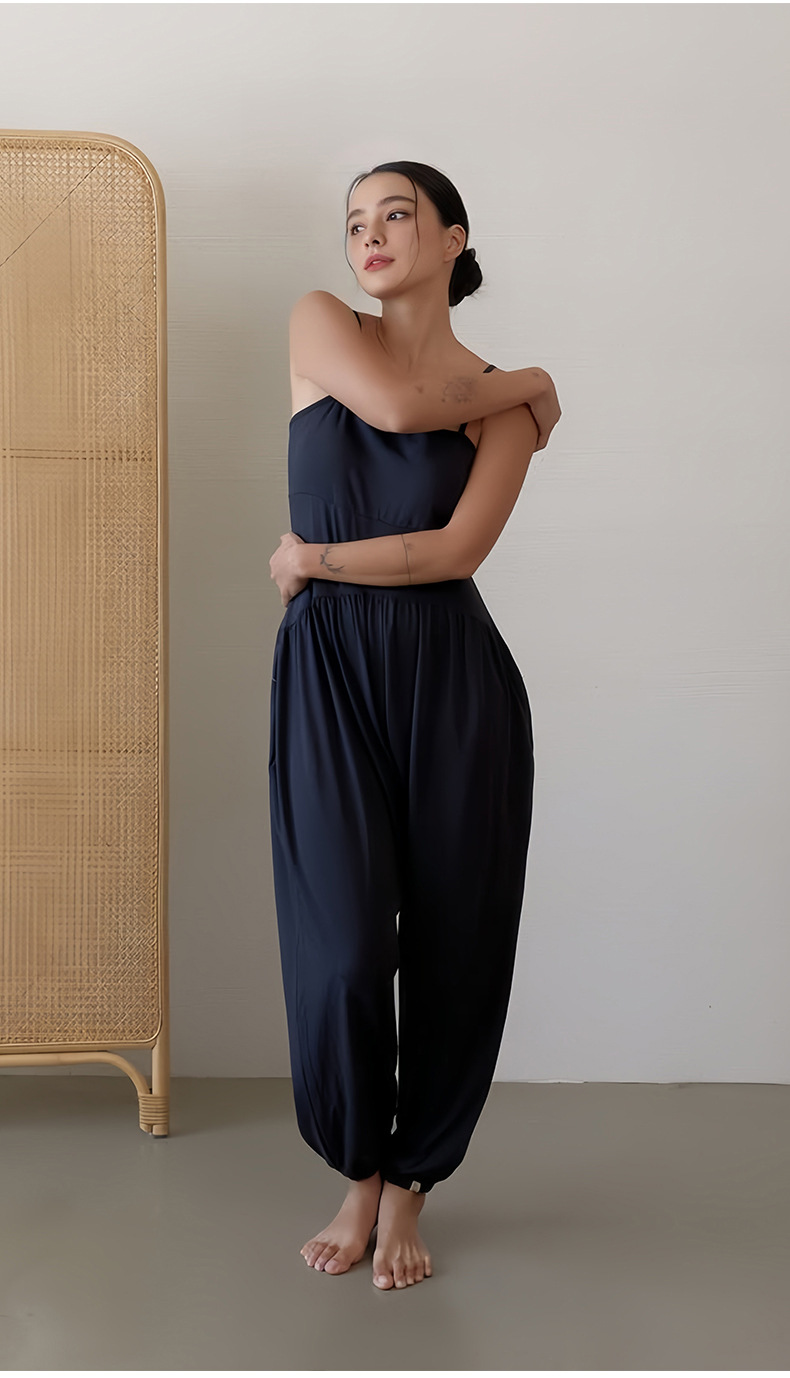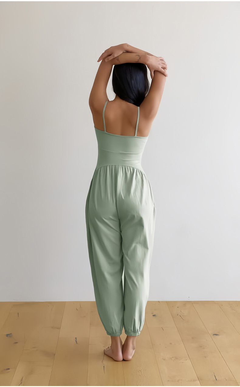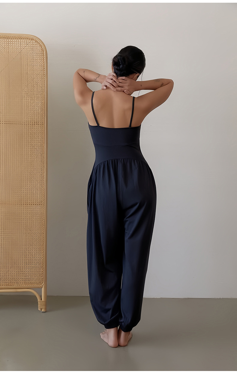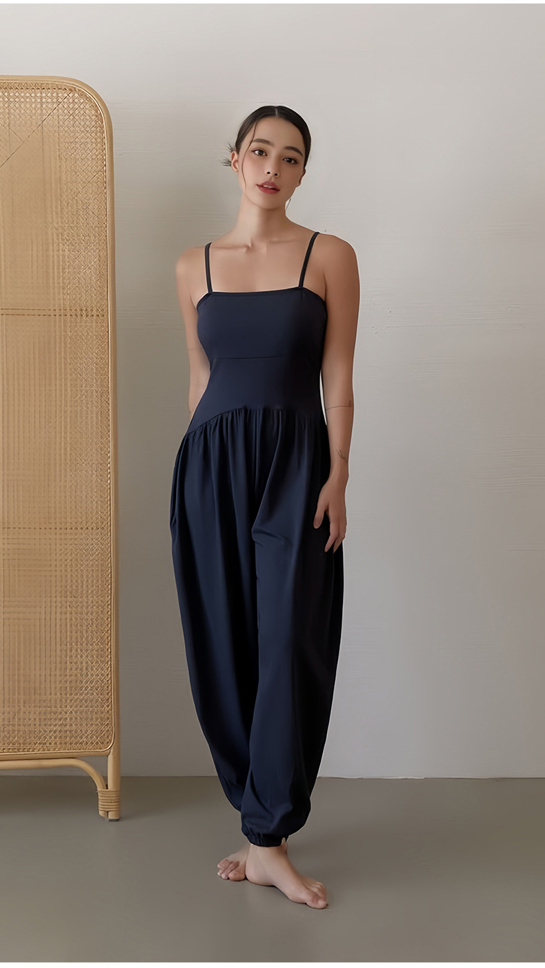 인쇄된 로고 사용자 정의 느슨한 민소매 서스펜더 오프 숄더 원피스 요가 바지 정장 요가 트레이닝 가슴 패드 여성용 올인원 의류