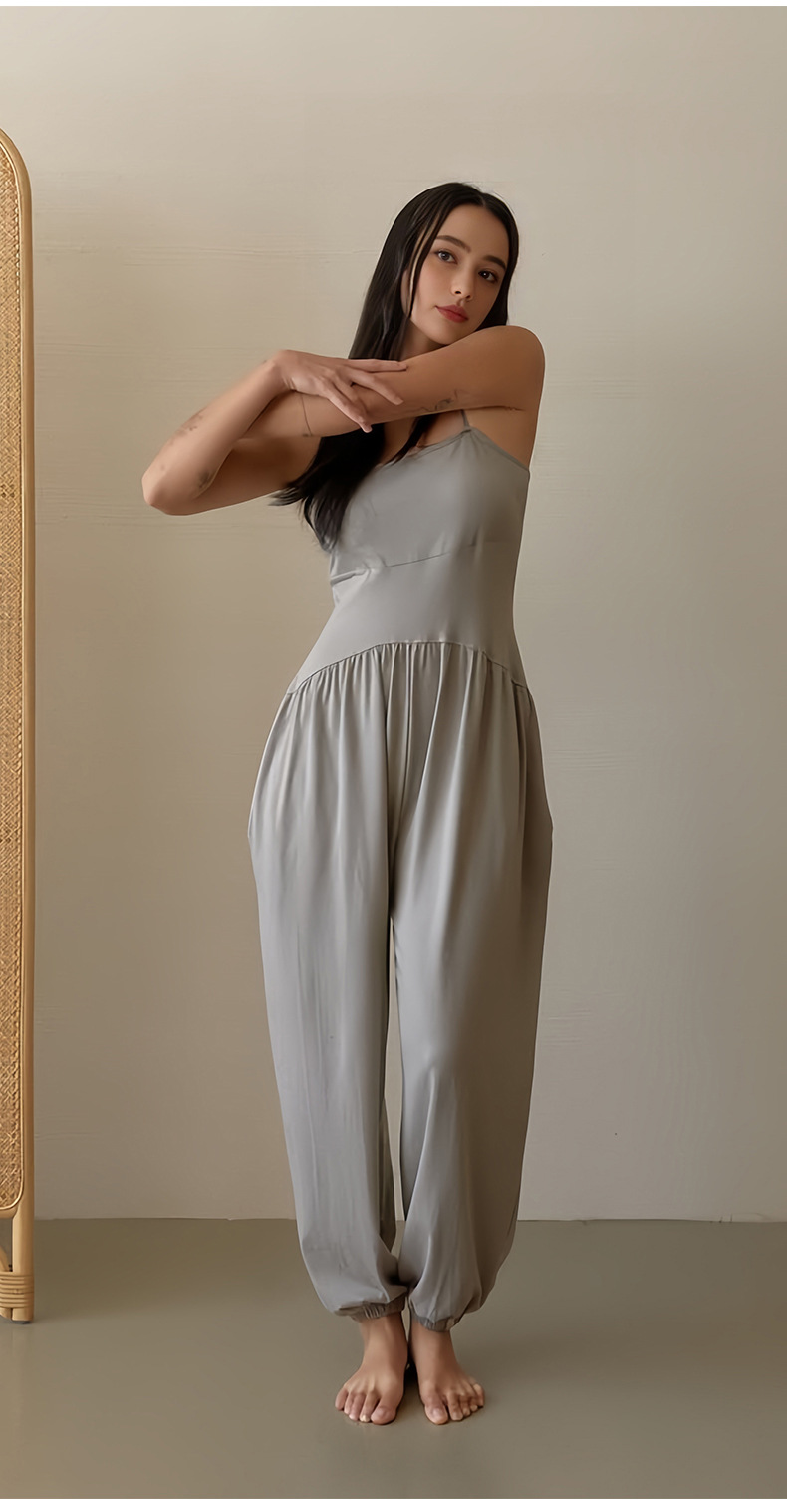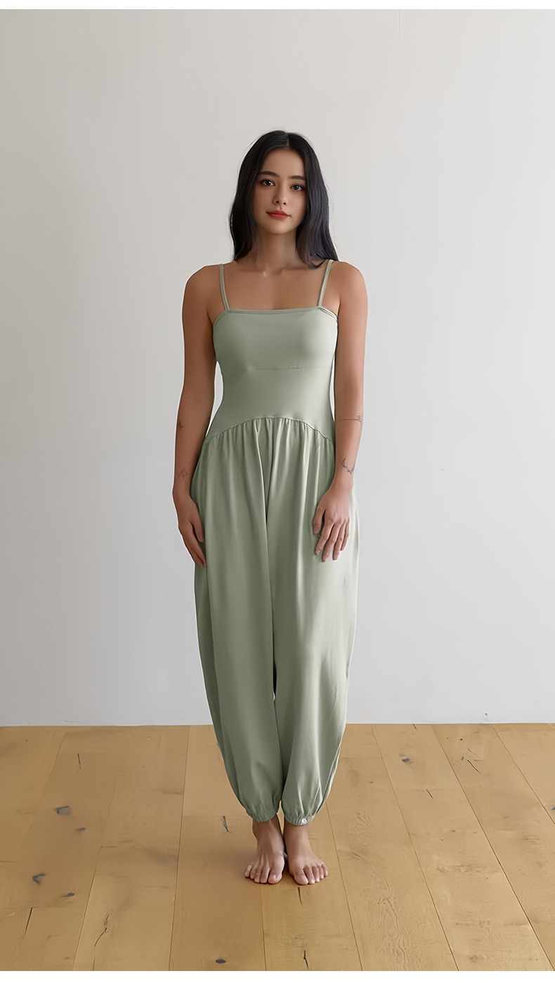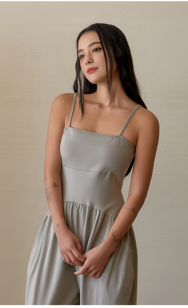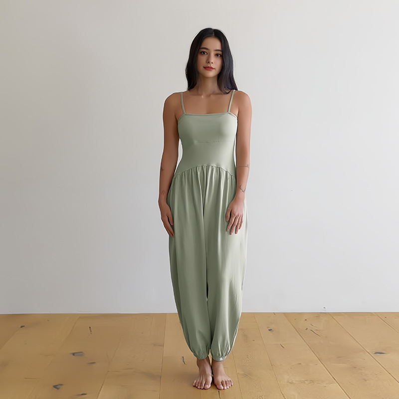인쇄된 로고 사용자 정의 느슨한 민소매 서스펜더 오프 숄더 원피스 요가 바지 정장 요가 트레이닝 가슴 패드 여성용 올인원 의류
