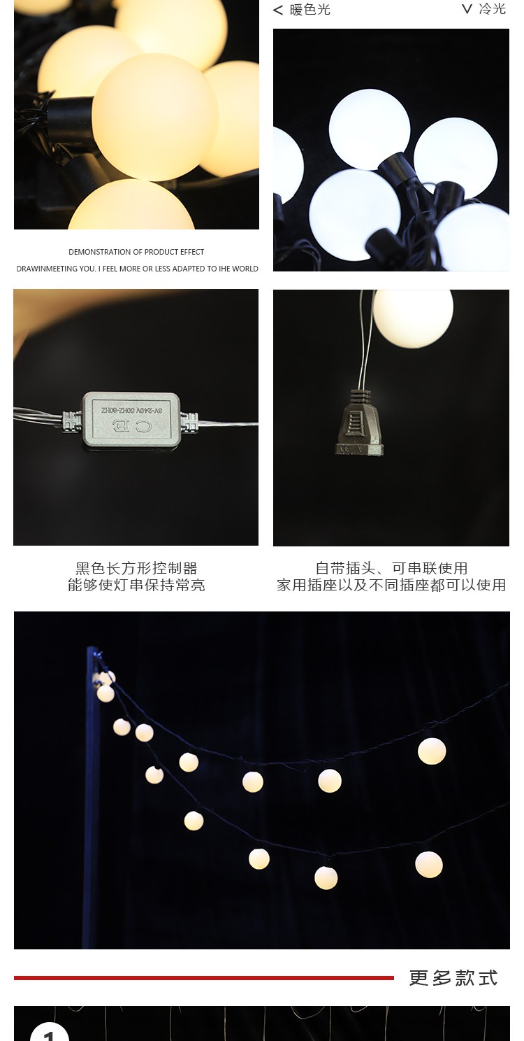 • 볼 램프 [따뜻한 빛 직경 10CM] 10개 헤드