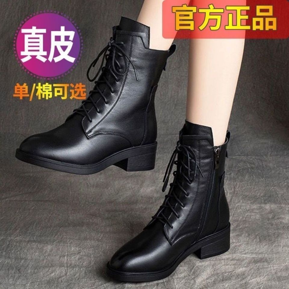 진짜 부드러운 가죽 기모 부츠 여자 2022 년 봄과 가을 새로운 짧은 배럴 마틴 부츠 여자 미드 힐 부츠 겨울 여자 부츠 Changzhen스토어 가기