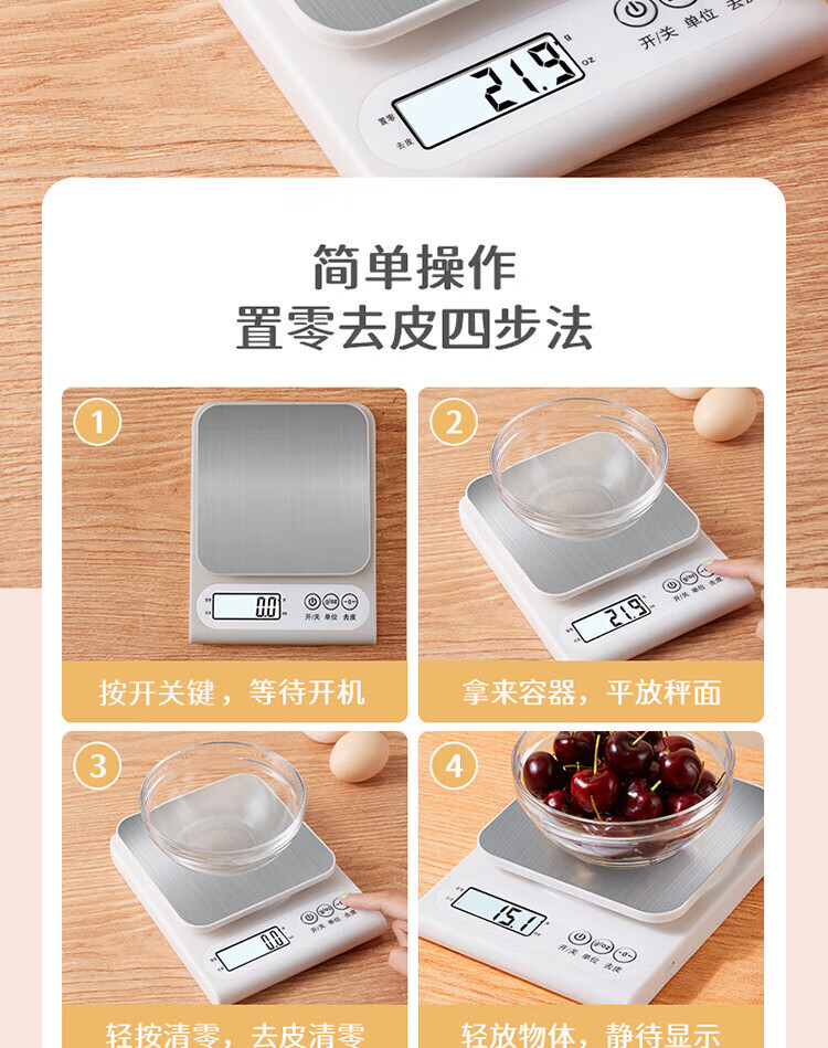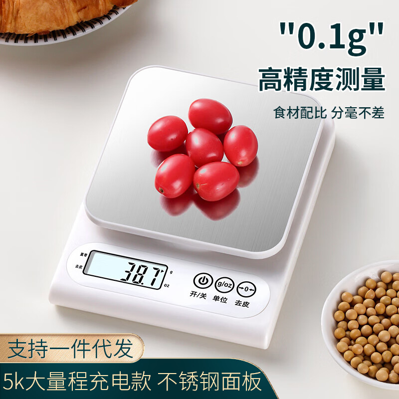 • 스테인레스 스틸 주방 저울⭐5kg/0.1g [충전식 모델]
