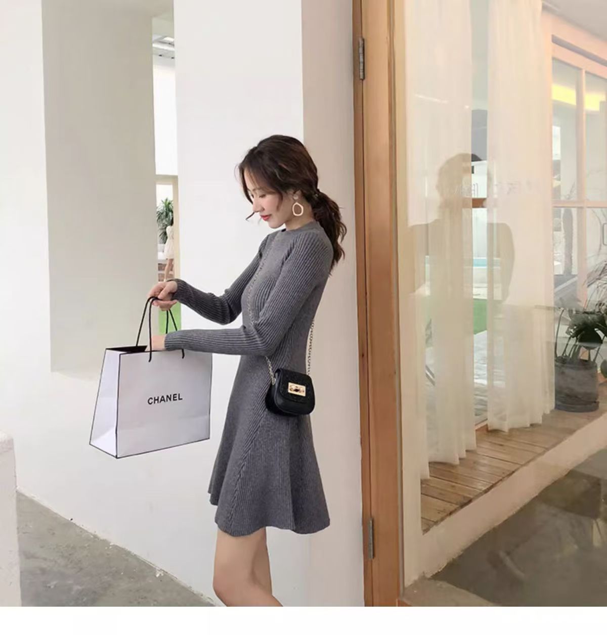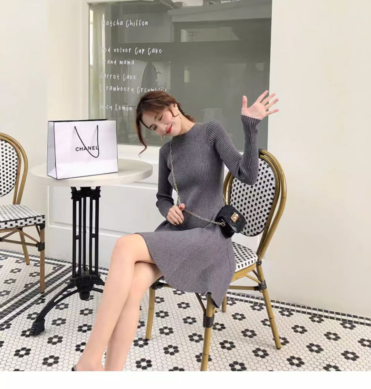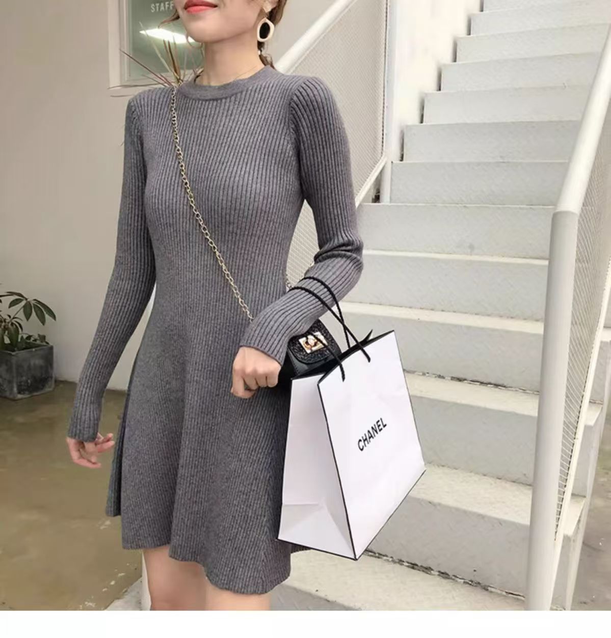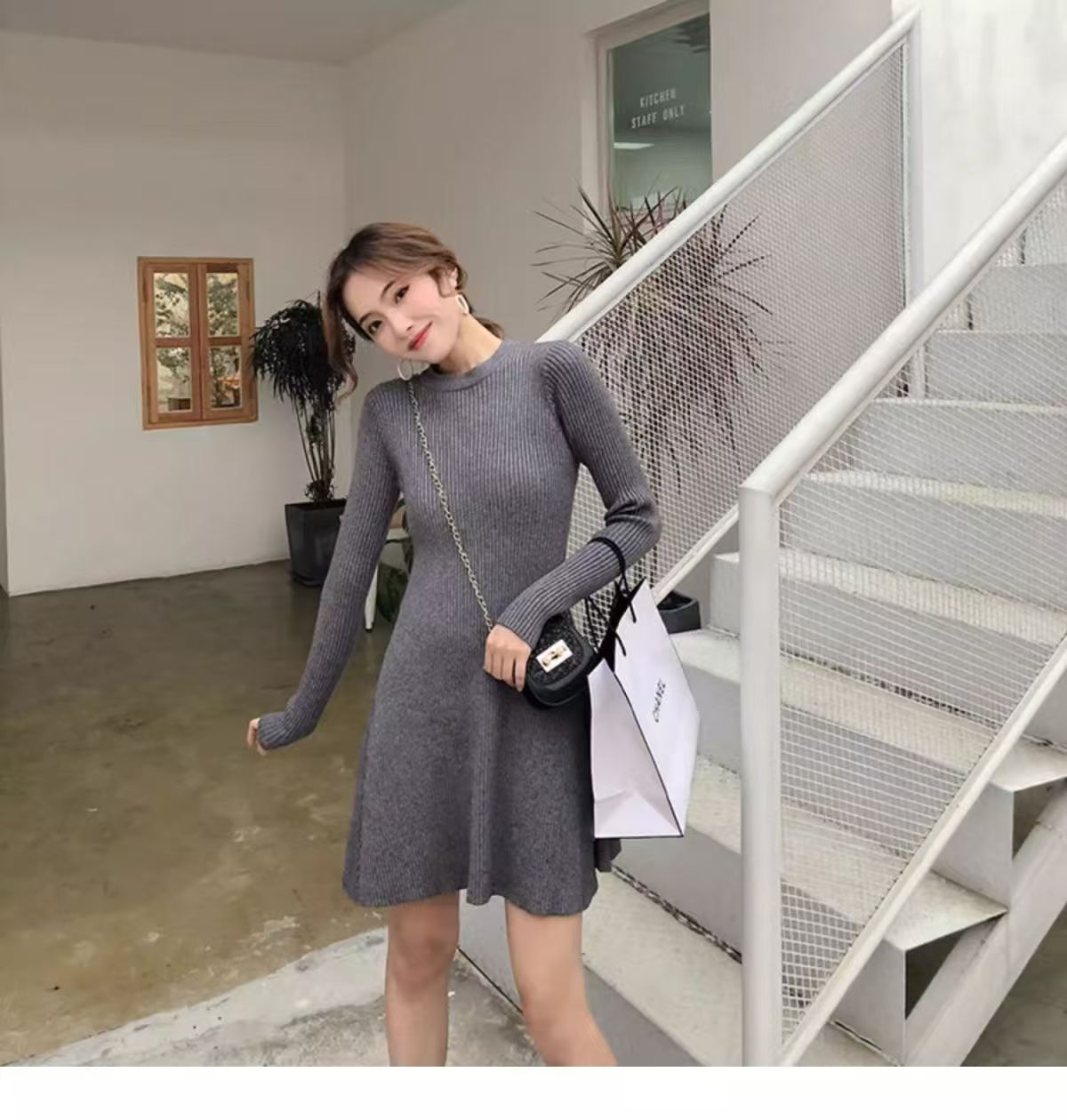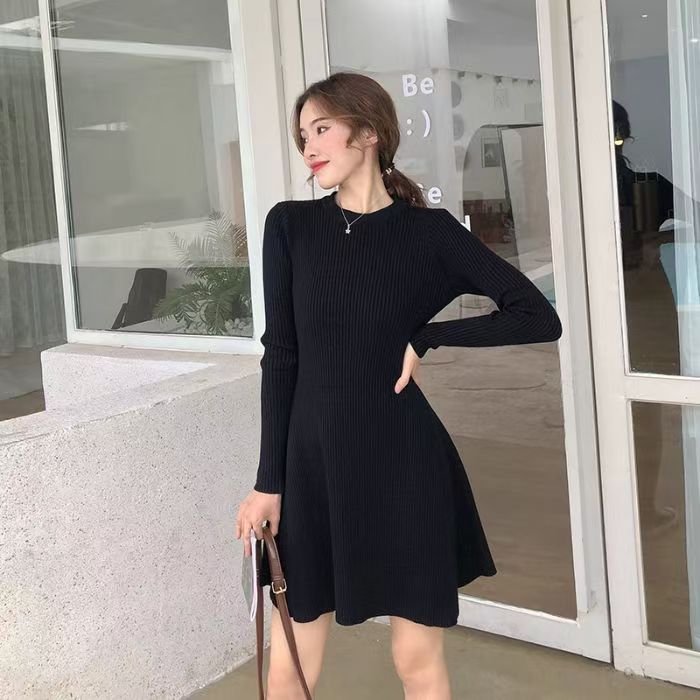 2025 가을 겨울 신상 니트 원피스 여성용 가을 겨울 짧은 스타일 슬림핏 이너웨어 겉옷 겸용 스웨터 스커트스토어 가기