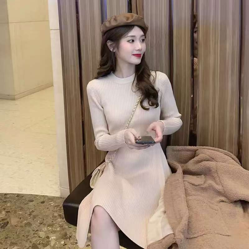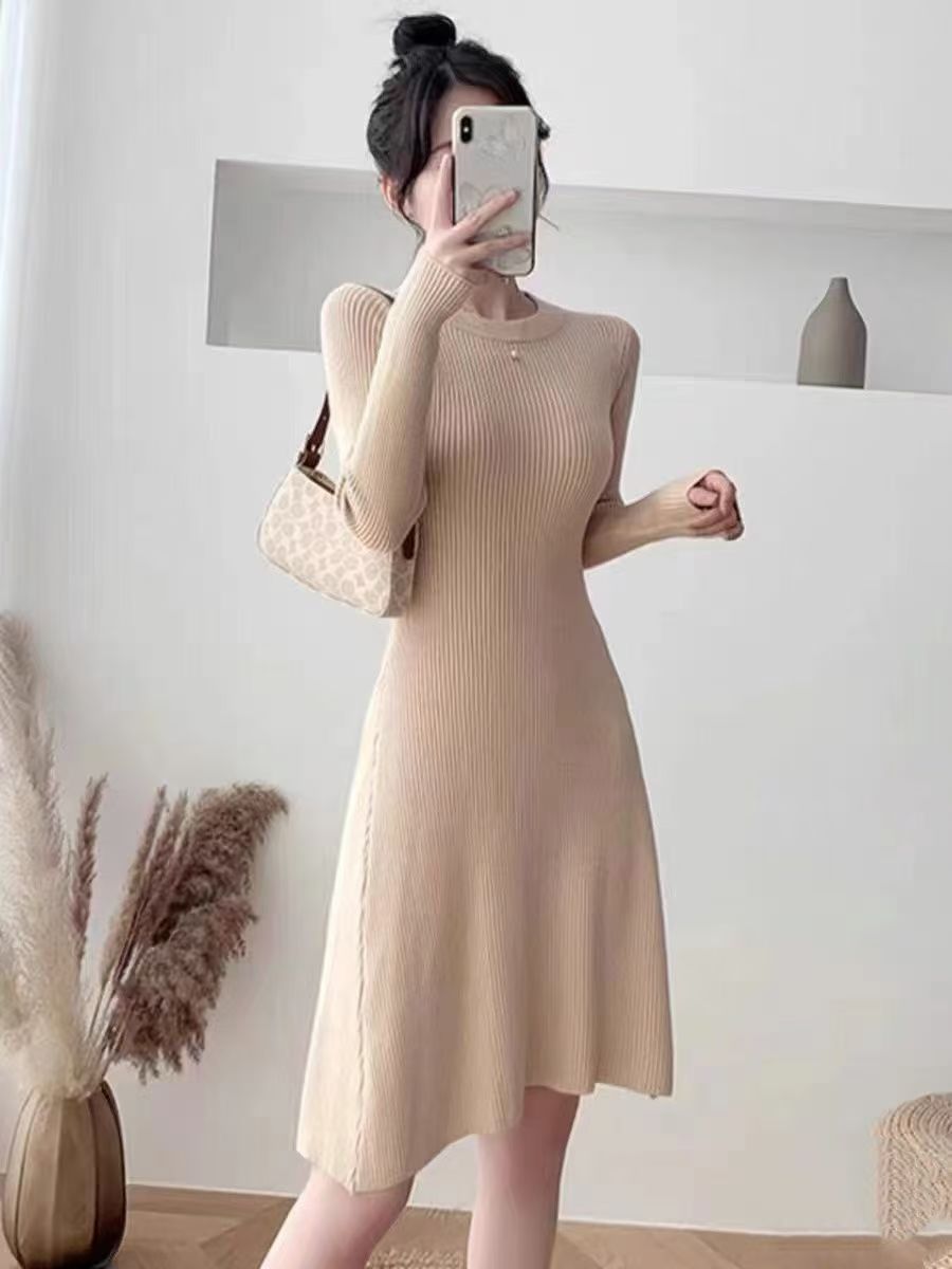 2025 가을 겨울 신상 니트 원피스 여성용 가을 겨울 짧은 스타일 슬림핏 이너웨어 겉옷 겸용 스웨터 스커트