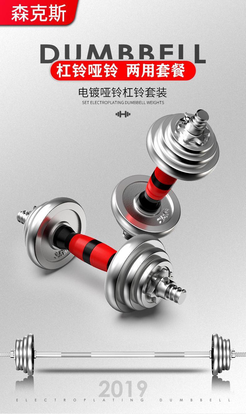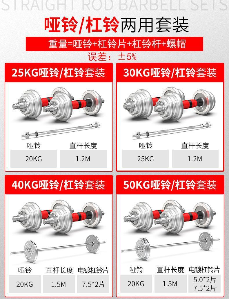 무료 배송 전기 도금 바벨 세트 남성 덤벨 이중 목적 조합 역도 홈 피트니스 20kg-100 Changzhen스토어 가기