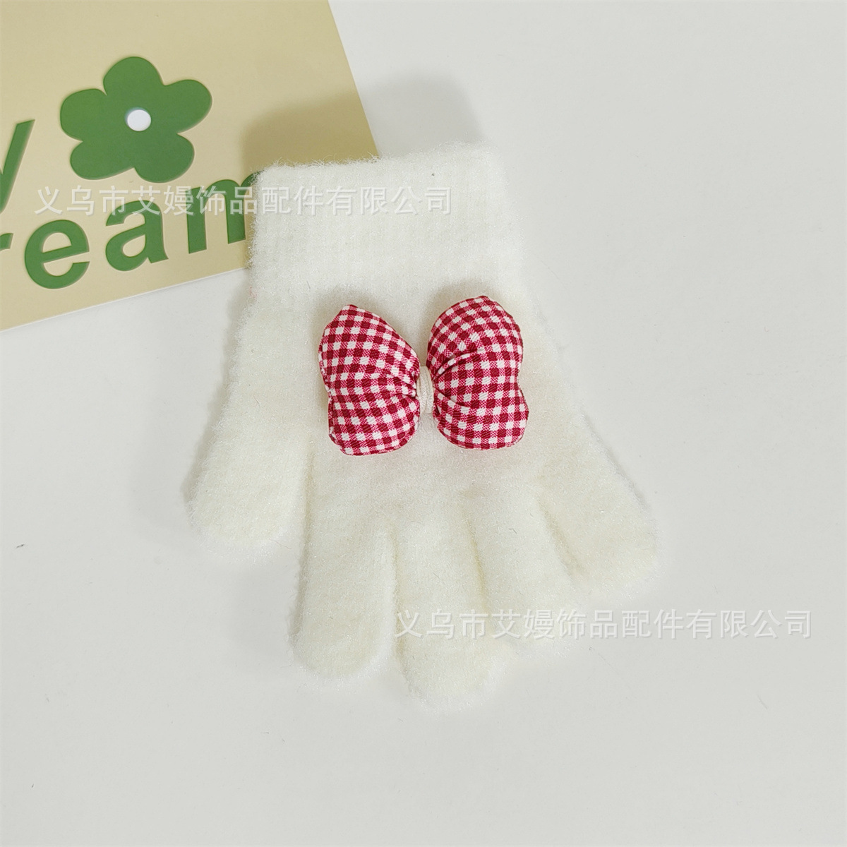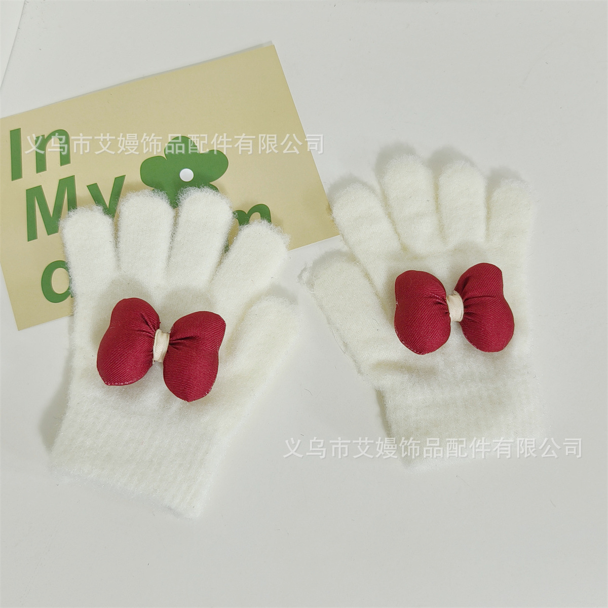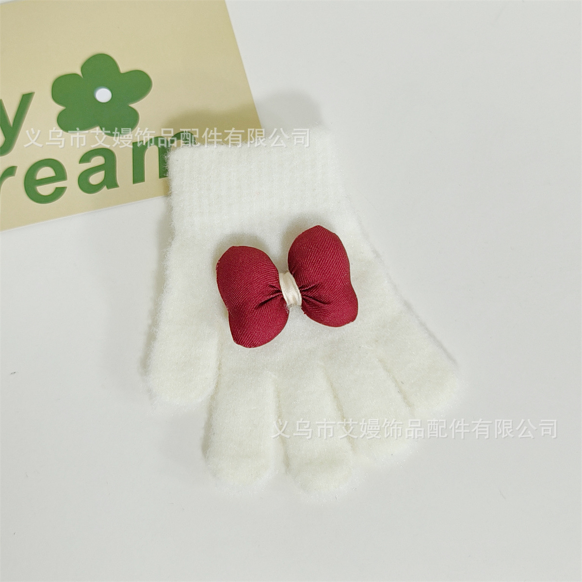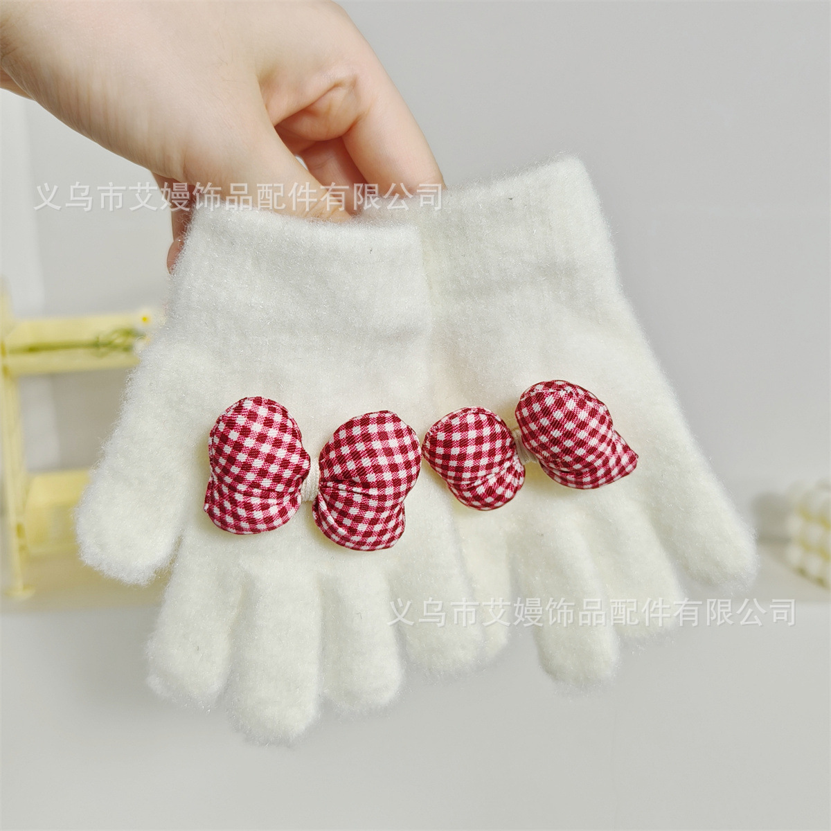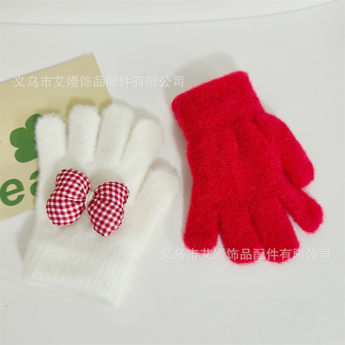 어린이 가을 겨울 한국 스타일 붉은 활 봉제 장갑 새해 붉은 따뜻한 손가락 보호 부동액 다섯 손가락