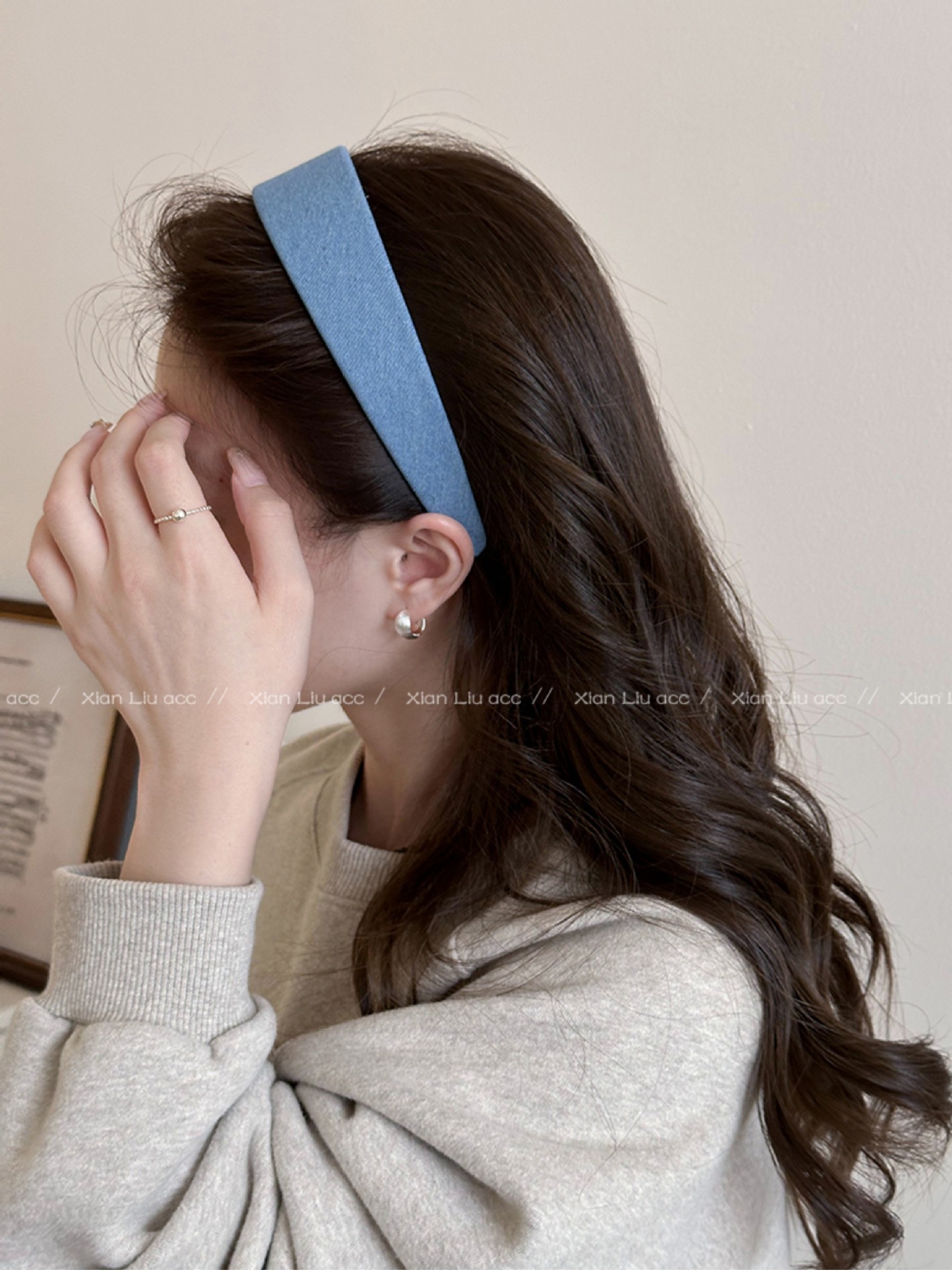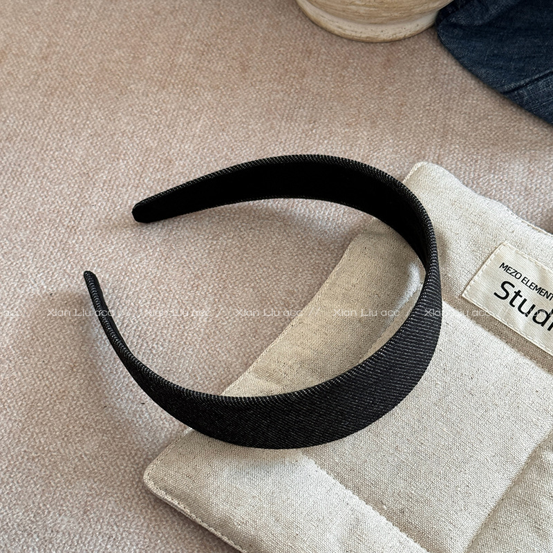 고급 센스 블루 데님 챙이 넓은 헤어 후프 간단한 포트 바람 압력 헤어 후프 여성의 2024 새로운 워시 헤어 카드 헤드웨어스토어 가기