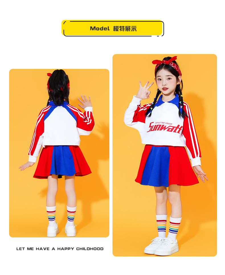 어린이 무대 공연 의류 설날 공연 의류 소녀 댄스 의류 어린이 치어 리더 세트