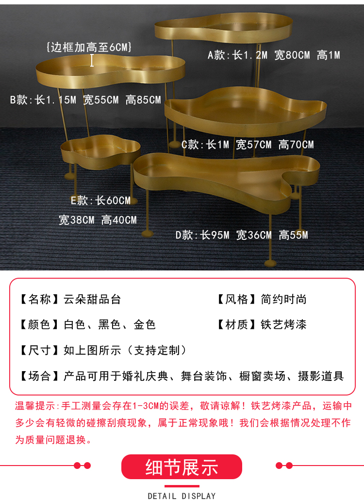 新款铁艺云朵甜品台婚庆甜品桌婚礼生日派对装饰摆件橱窗布置
