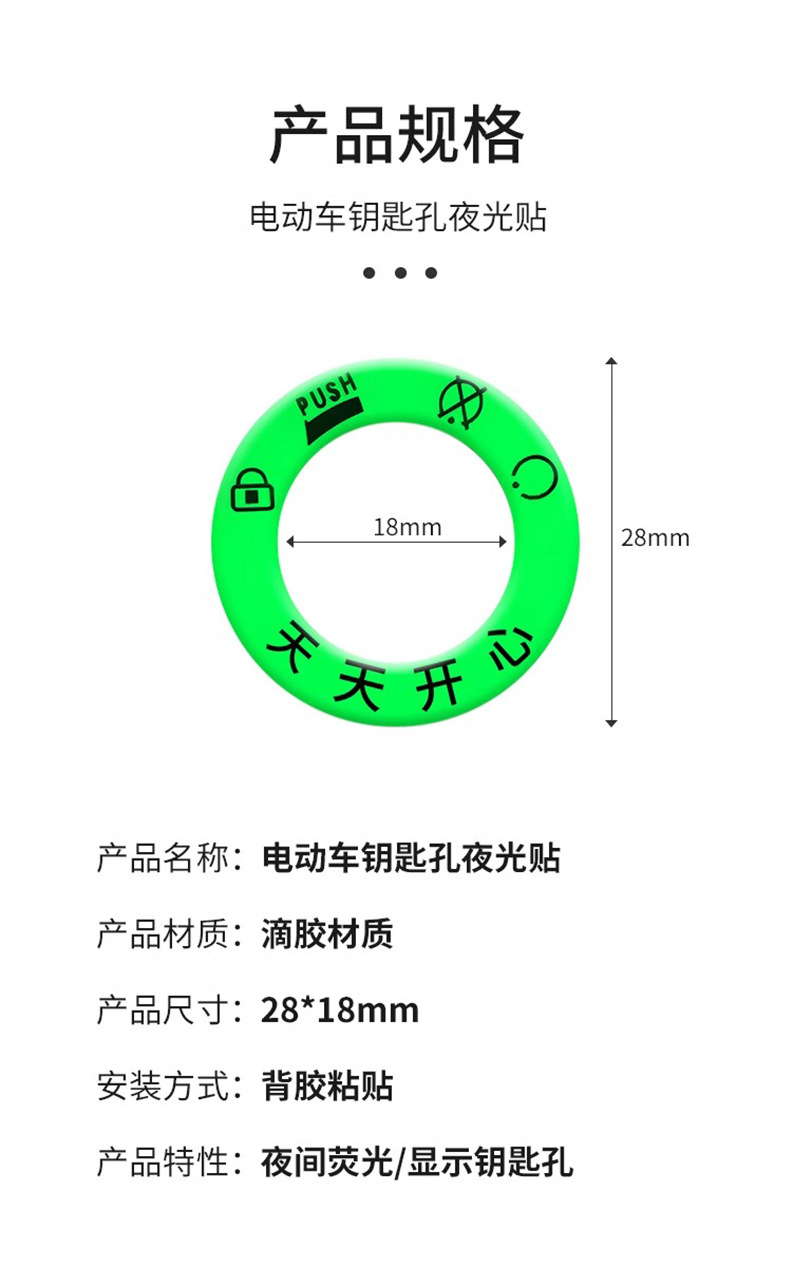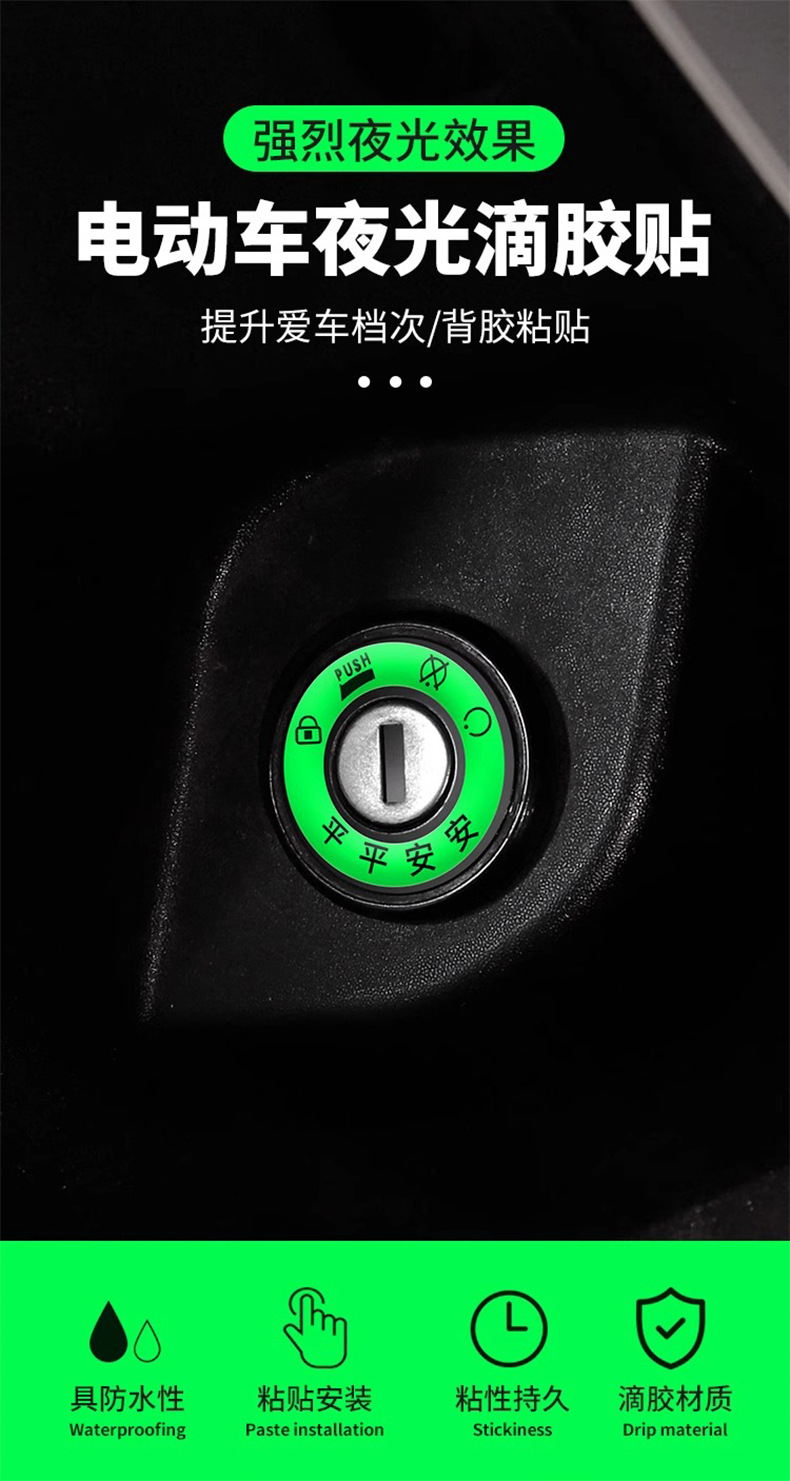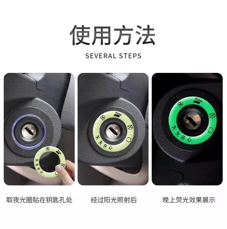 전기 자동차 빛나는 열쇠 고리 스티커 반사 형광 슈퍼 밝은 자동차 스티커 영구 열쇠 구멍 스위치 링 머리 조리개 방수스토어 가기