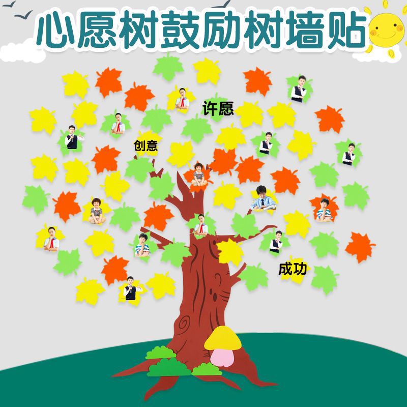 지혜의 격려는 나무 수업 레이아웃 교실 장식 벽 스티커 초등학교 유치원 칠판 신문 문화 창젠을 기원합니다스토어 가기