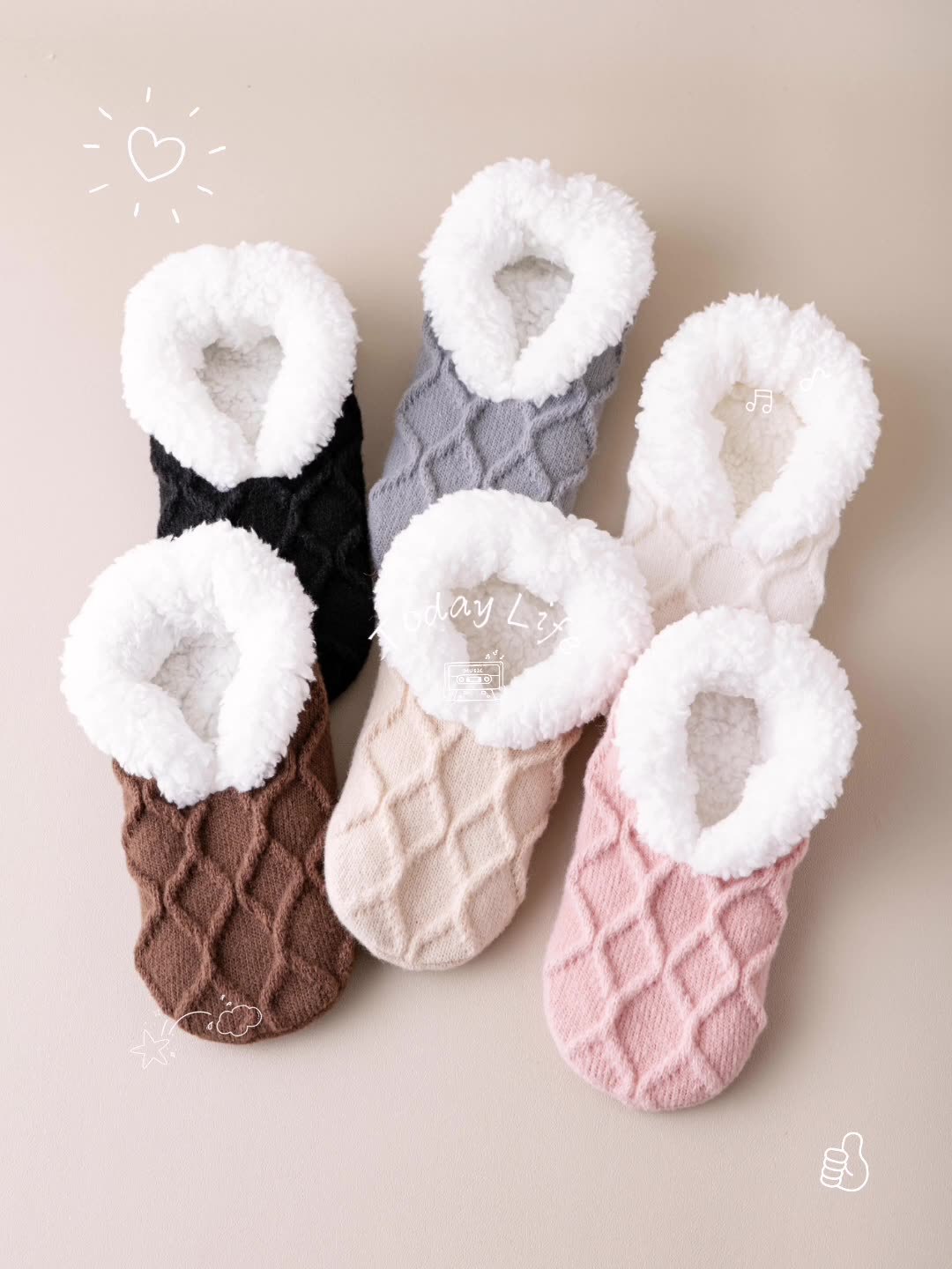 바닥 양말 겨울 성인 기모 두꺼운 따뜻한 신발과 양말 여성 홈 비 슬립 발 따뜻한 발 양말 양고기 양털 신발 및 양말스토어 가기