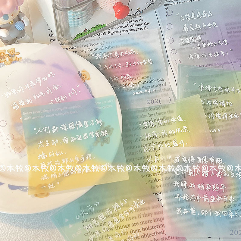 Ins 바람 투명한 황산 종이 그라디언트 노트 높은 빛 헤일로 노트 높은 색 가치 손 계정 소재 팩 Changzhen