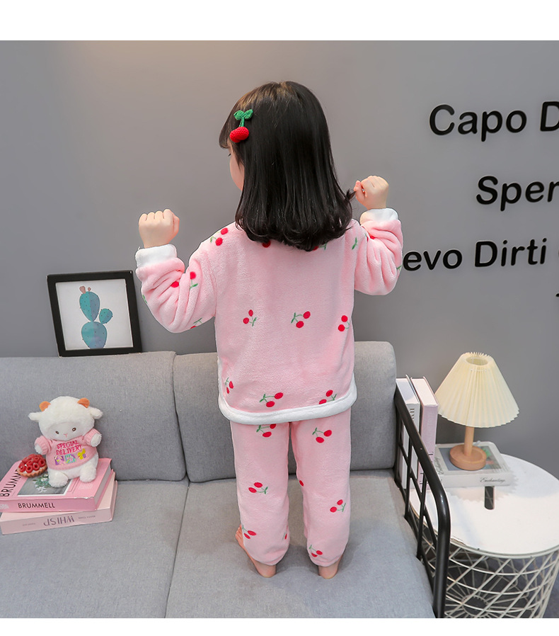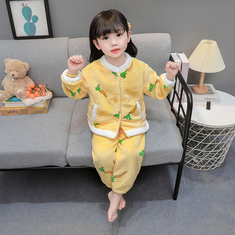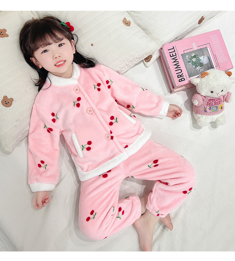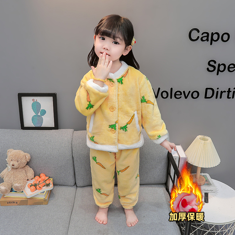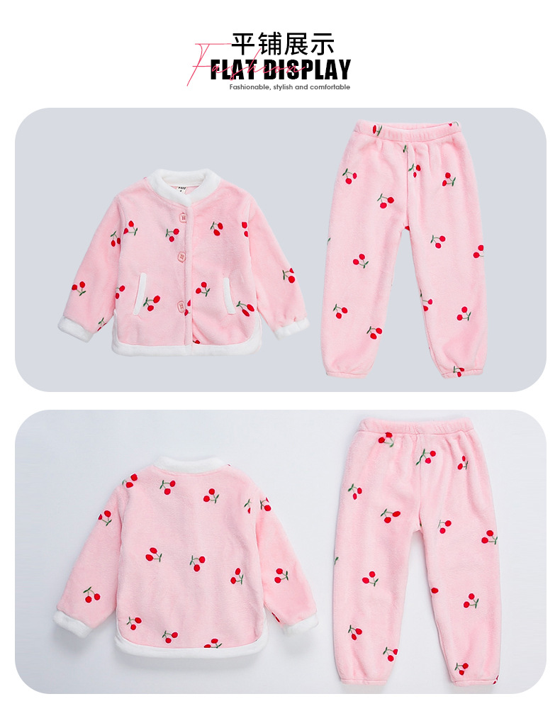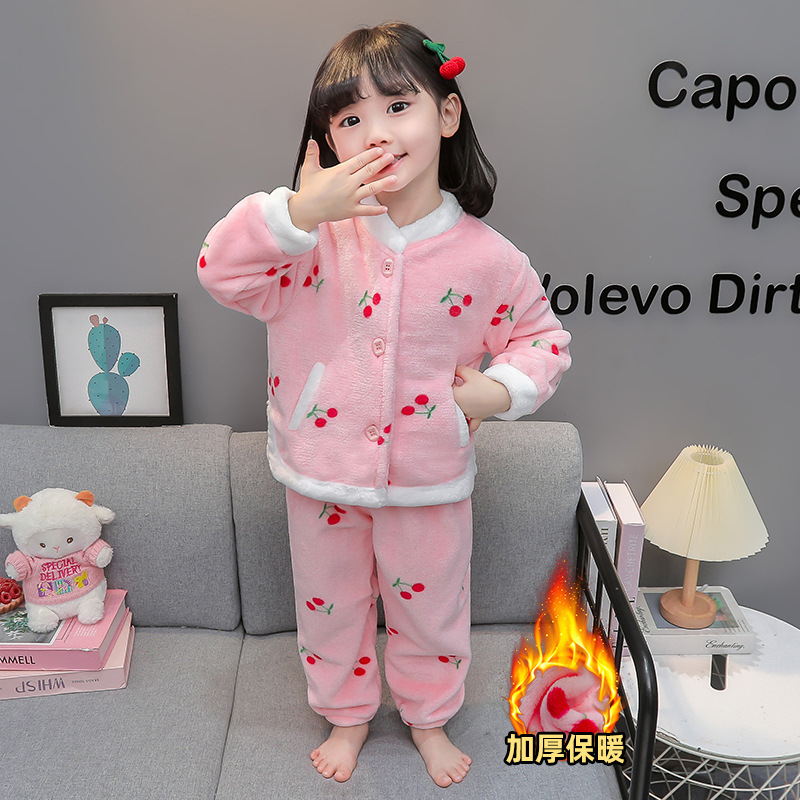 남학생과 여학생을위한 겨울 어린이 의류 플란넬 편안한 속옷 세트 따뜻한 두꺼운 기모 홈 옷 파자마 투피스 세트