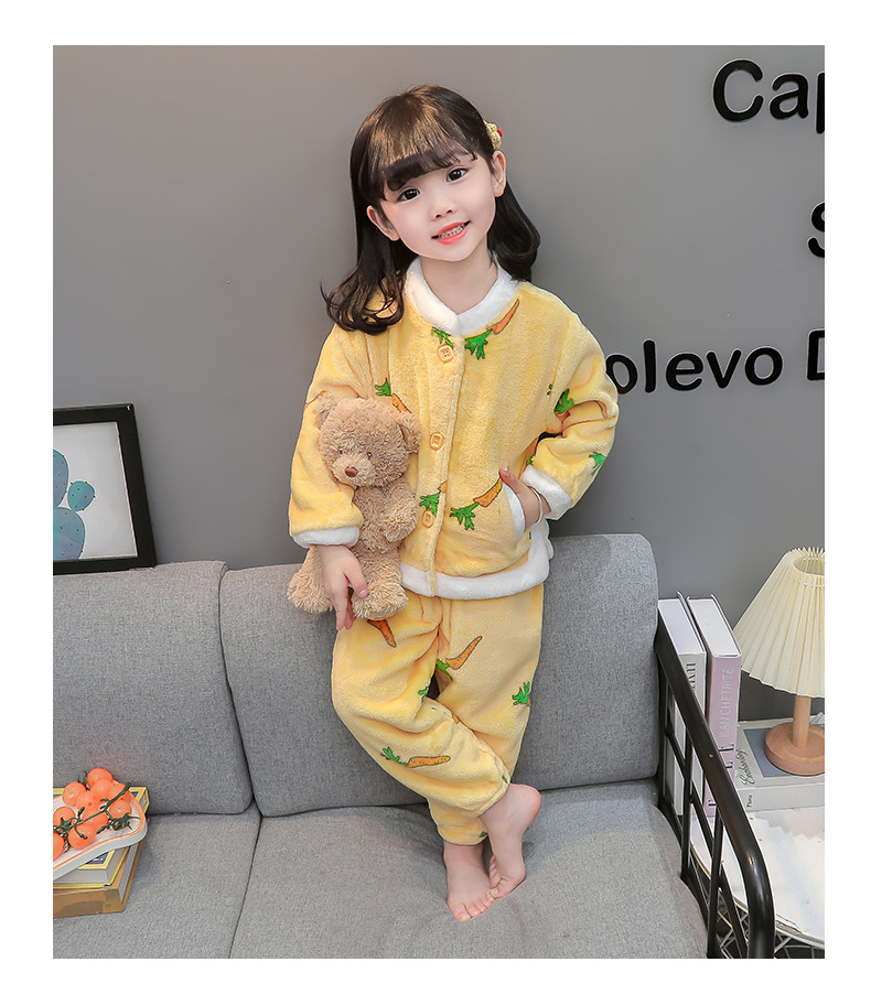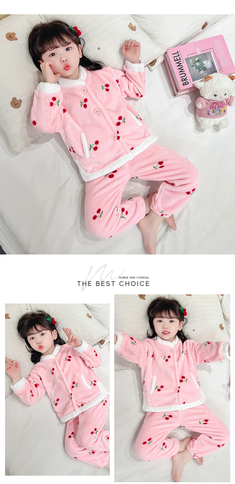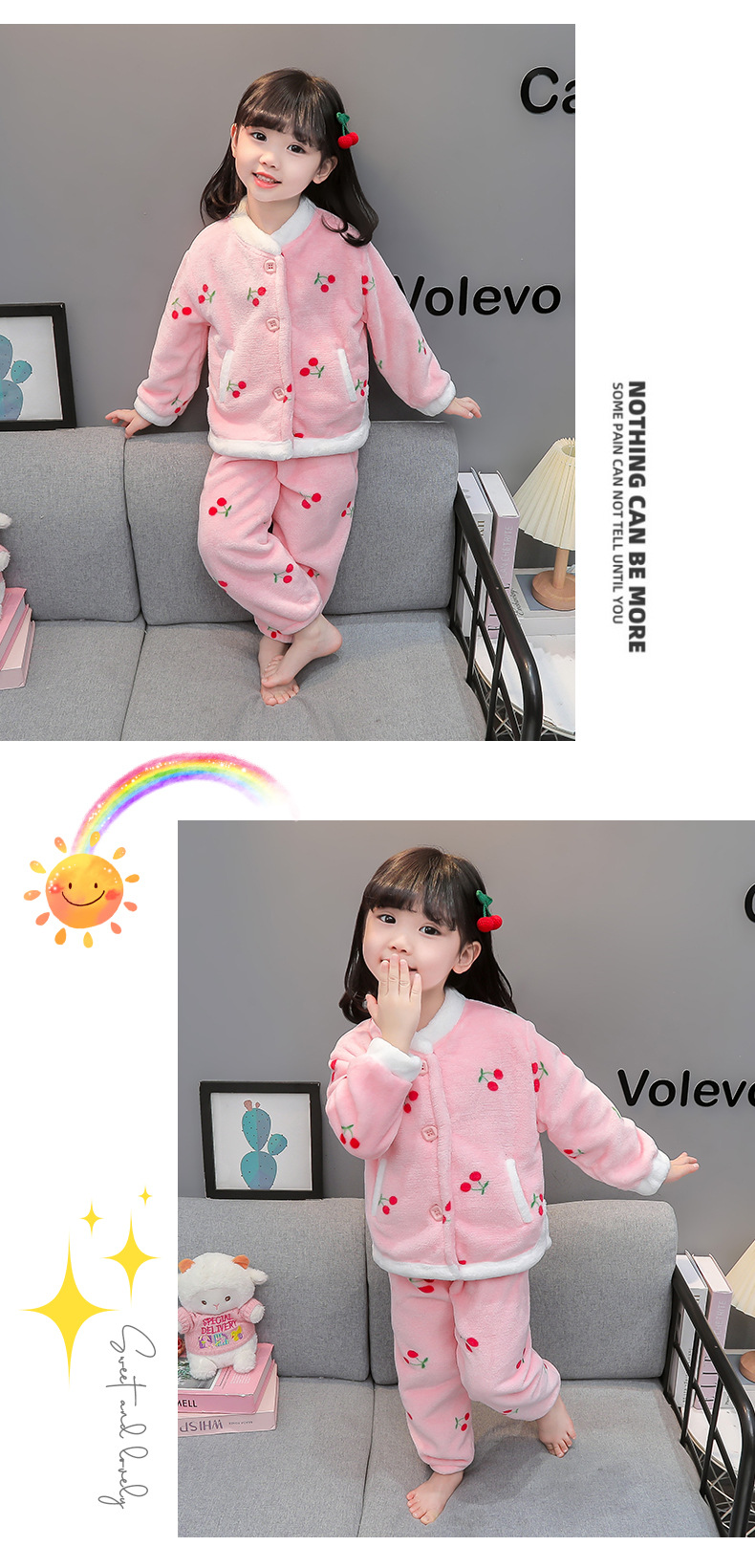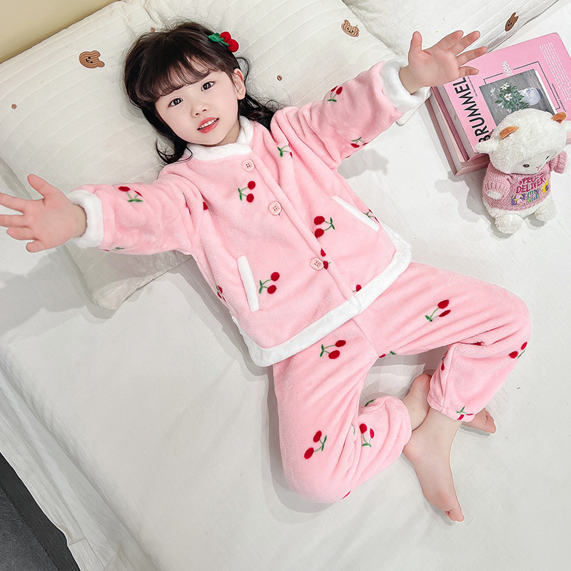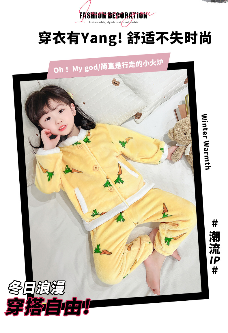 남학생과 여학생을위한 겨울 어린이 의류 플란넬 편안한 속옷 세트 따뜻한 두꺼운 기모 홈 옷 파자마 투피스 세트
