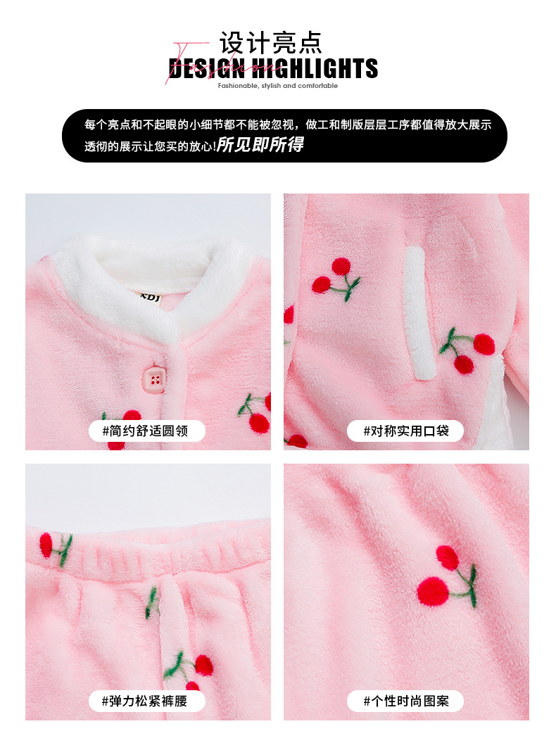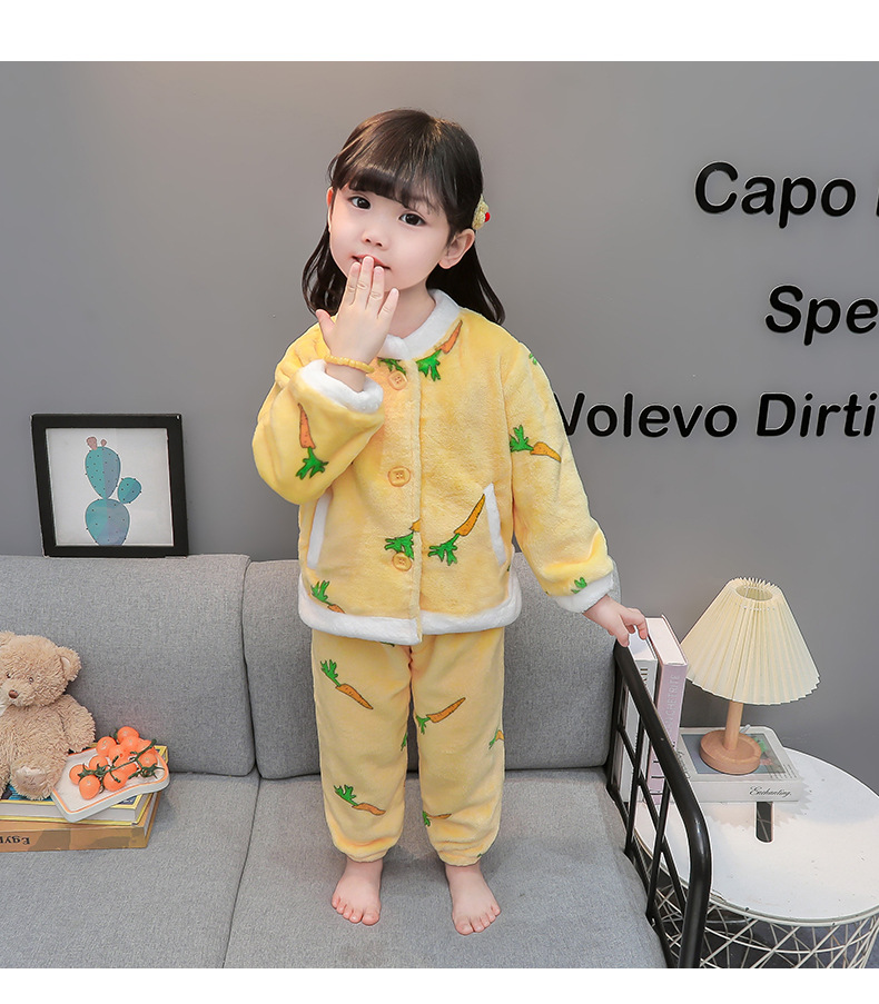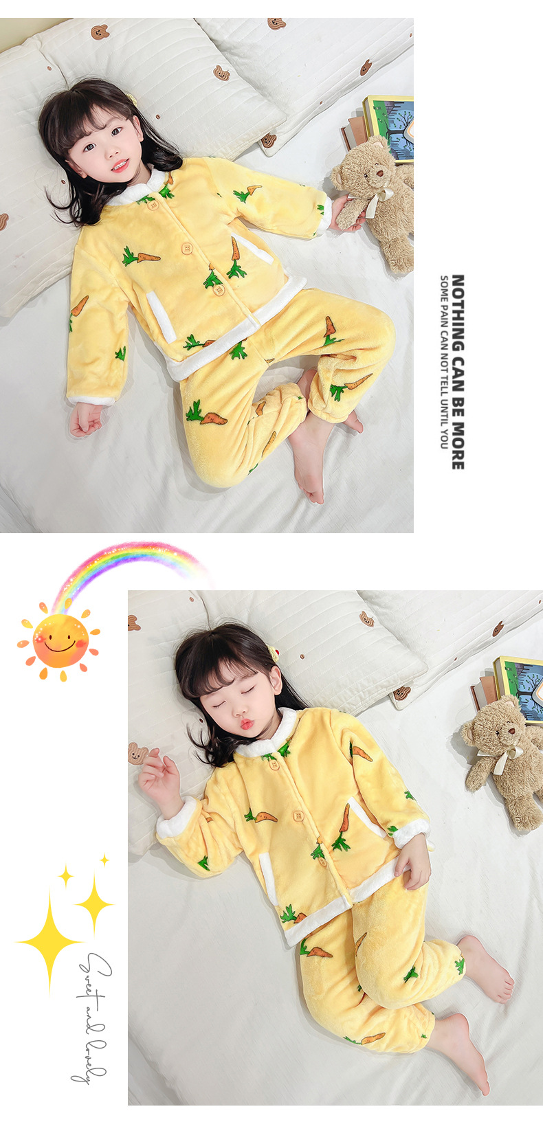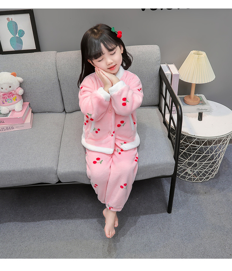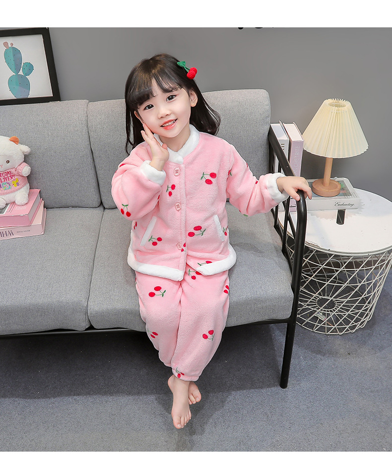 남학생과 여학생을위한 겨울 어린이 의류 플란넬 편안한 속옷 세트 따뜻한 두꺼운 기모 홈 옷 파자마 투피스 세트