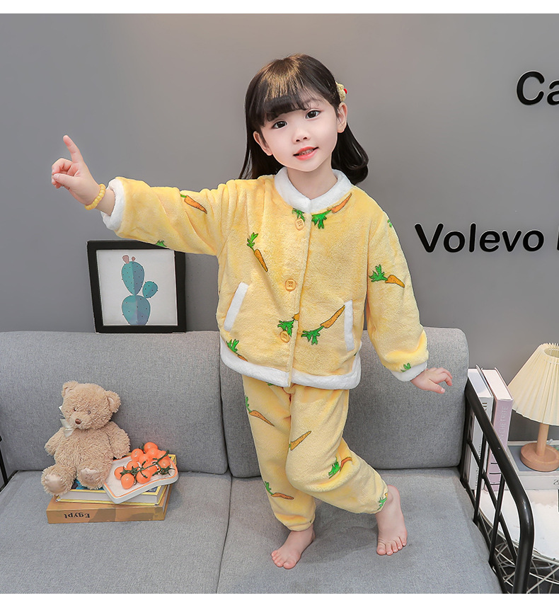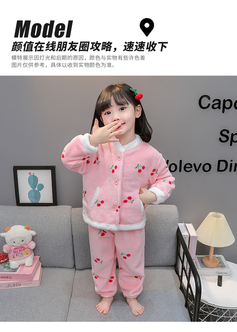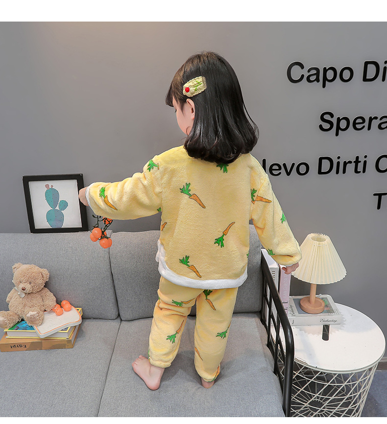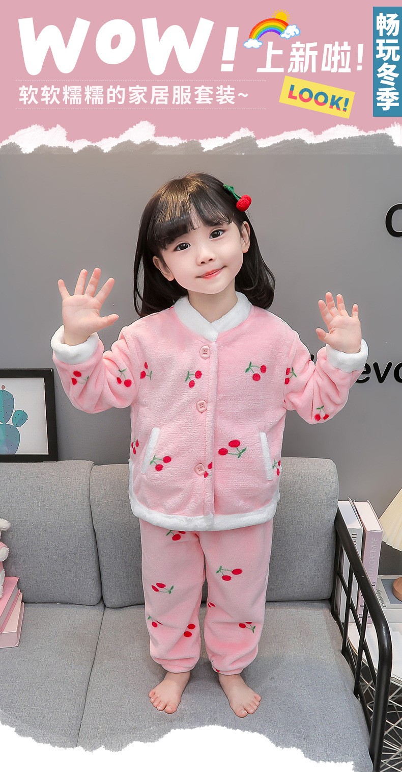 남학생과 여학생을위한 겨울 어린이 의류 플란넬 편안한 속옷 세트 따뜻한 두꺼운 기모 홈 옷 파자마 투피스 세트스토어 가기