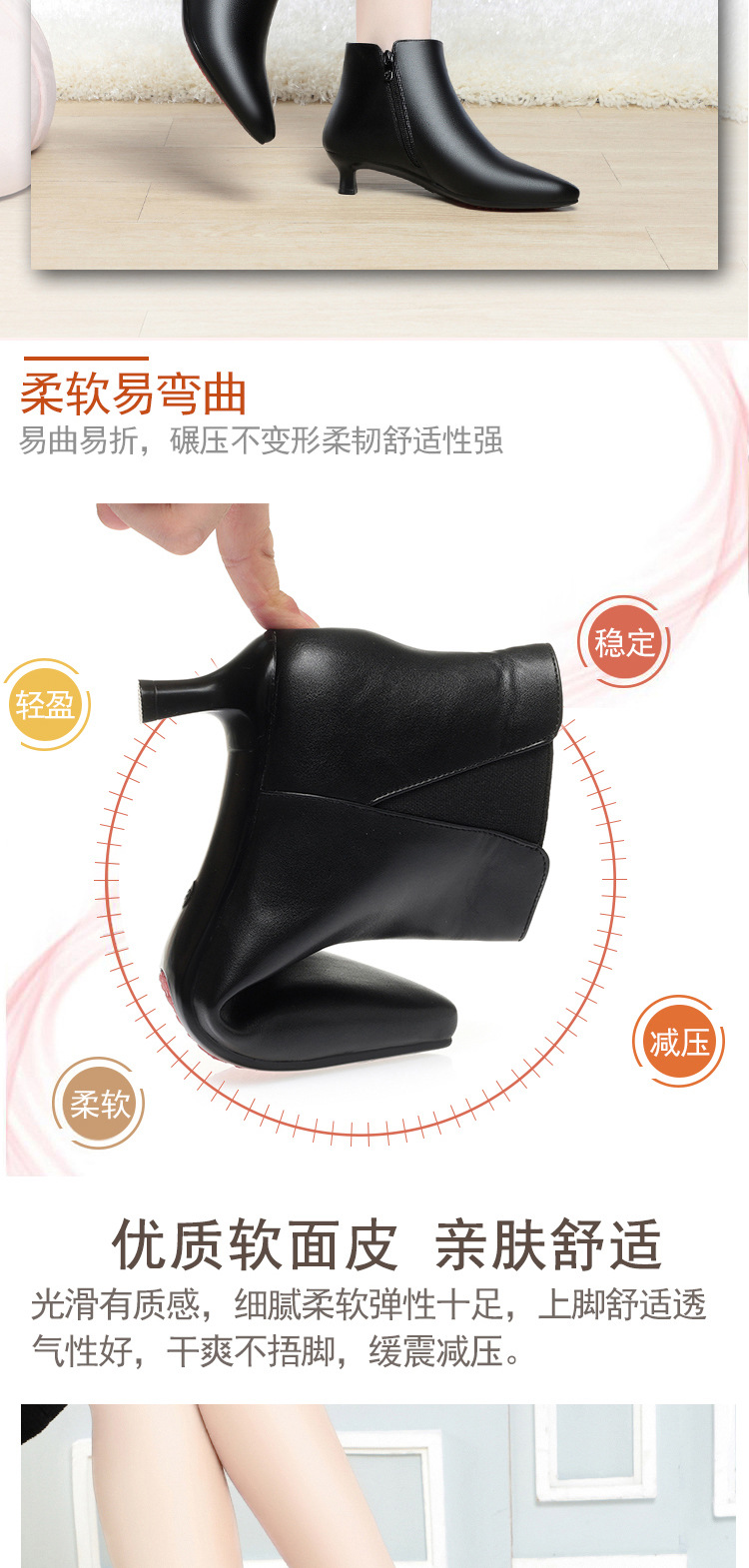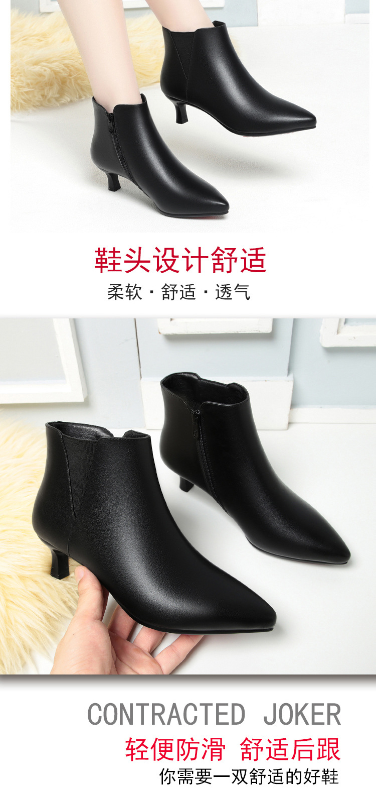 짧은 부츠 여성의 부드러운 바닥 부드러운 표면 부드러운 가죽 싱글 부츠 작업 부츠 기모 가죽 신발 면화 신발 미끄럼 방지 솔리드 컬러 가죽 부츠 엄마 신발