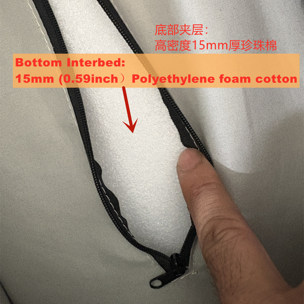 底部夹层:15mm(0.59英寸)聚乙烯泡沫棉