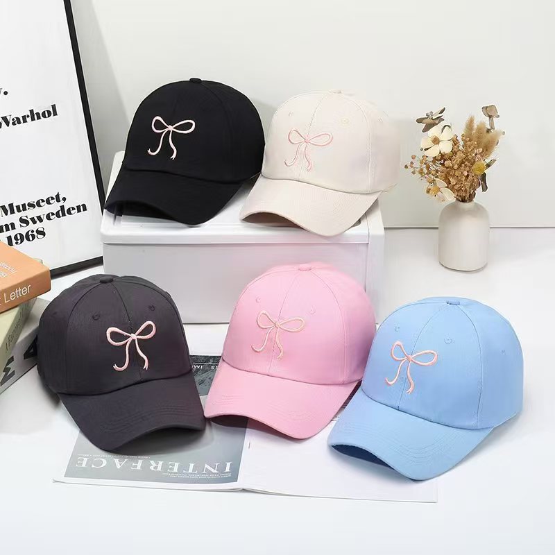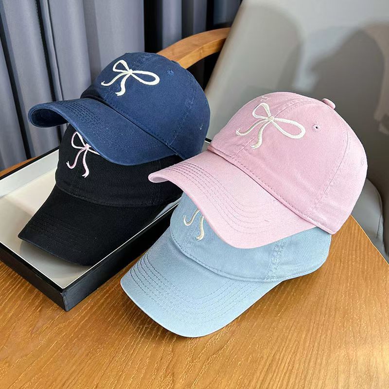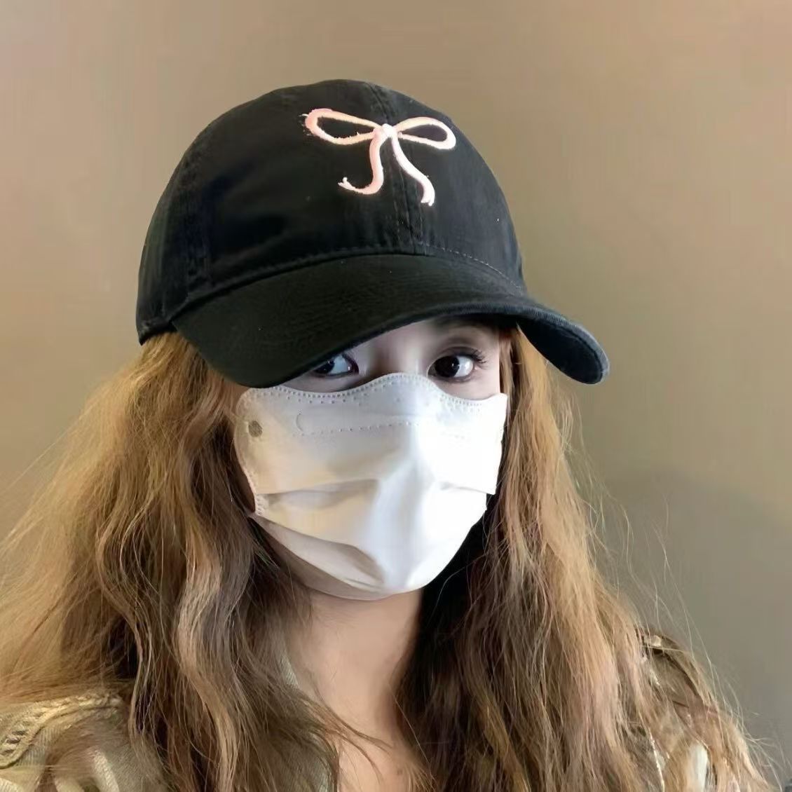 인터넷 연예인 여성의 달콤한 귀여운 핑크 활 야구 모자 학생 얼굴 작은 조정 가능한 넓은 브림 햇살 야구 모자