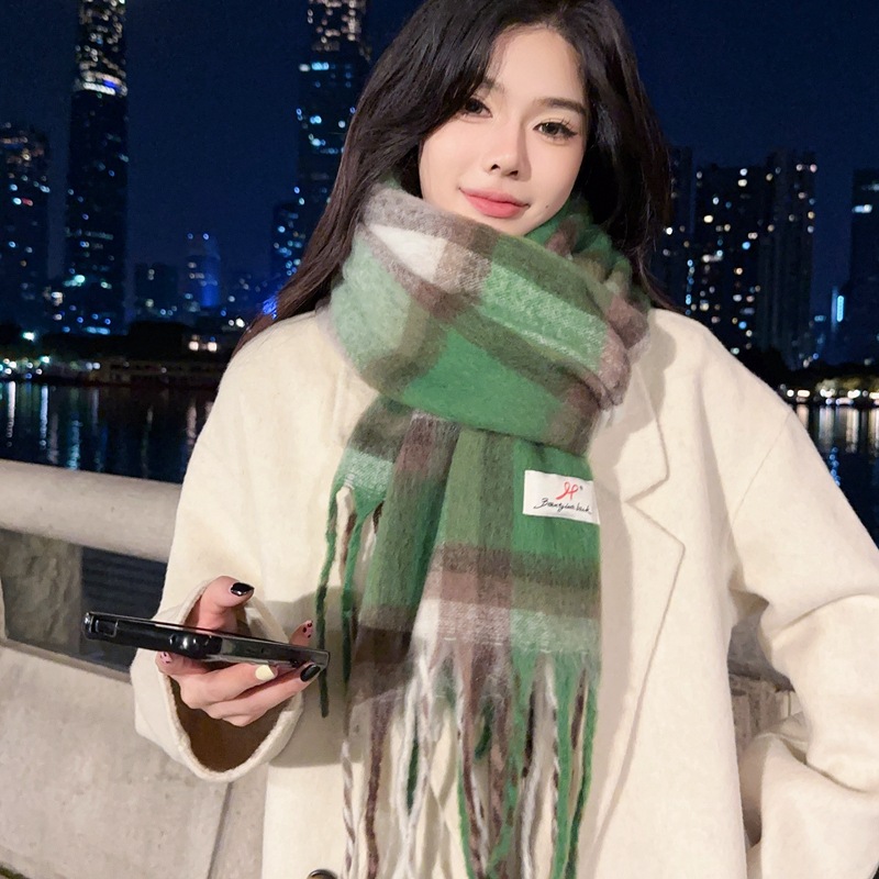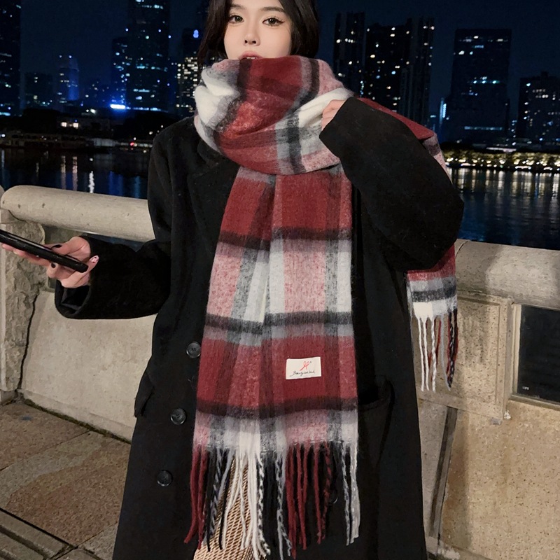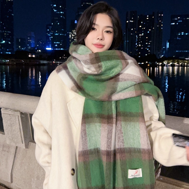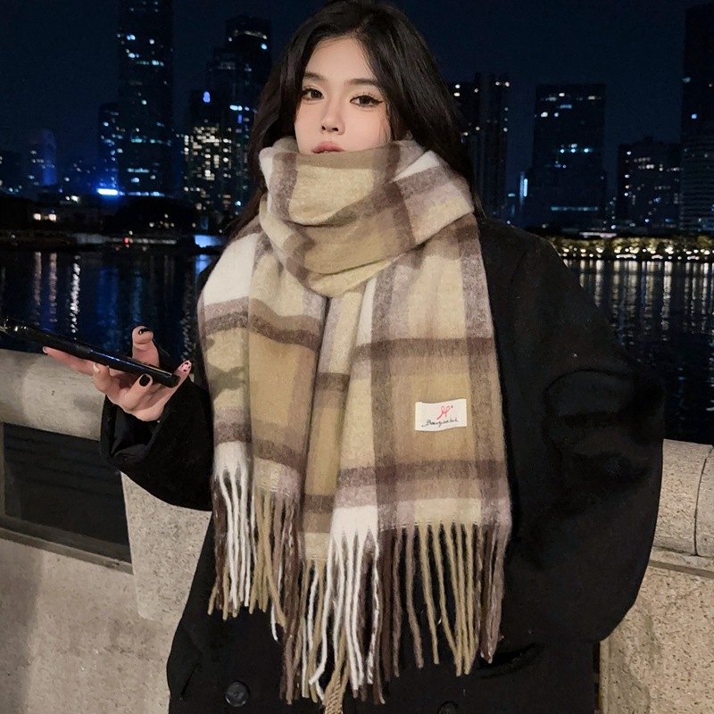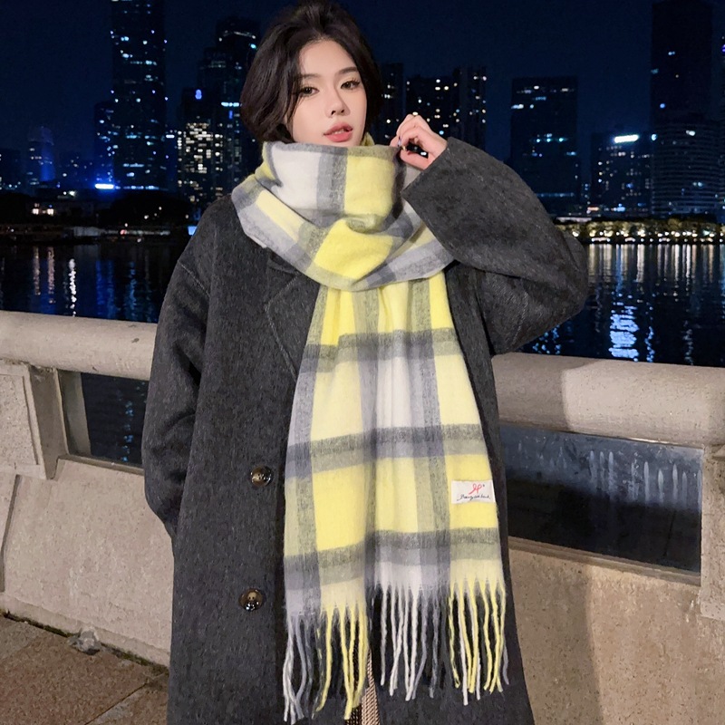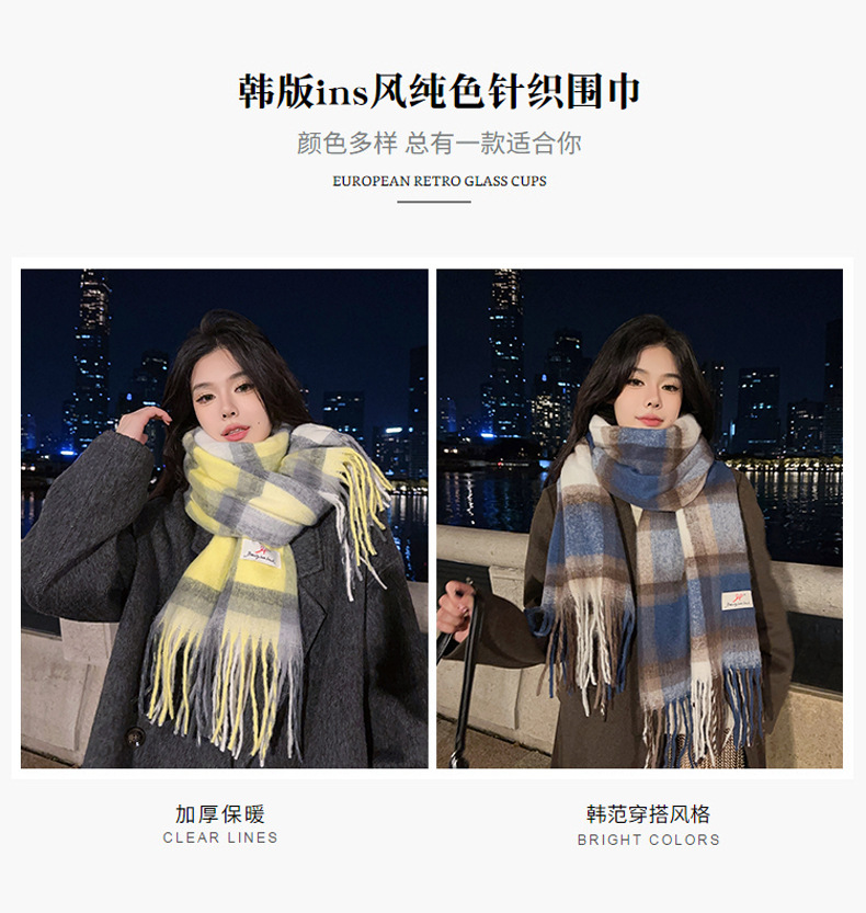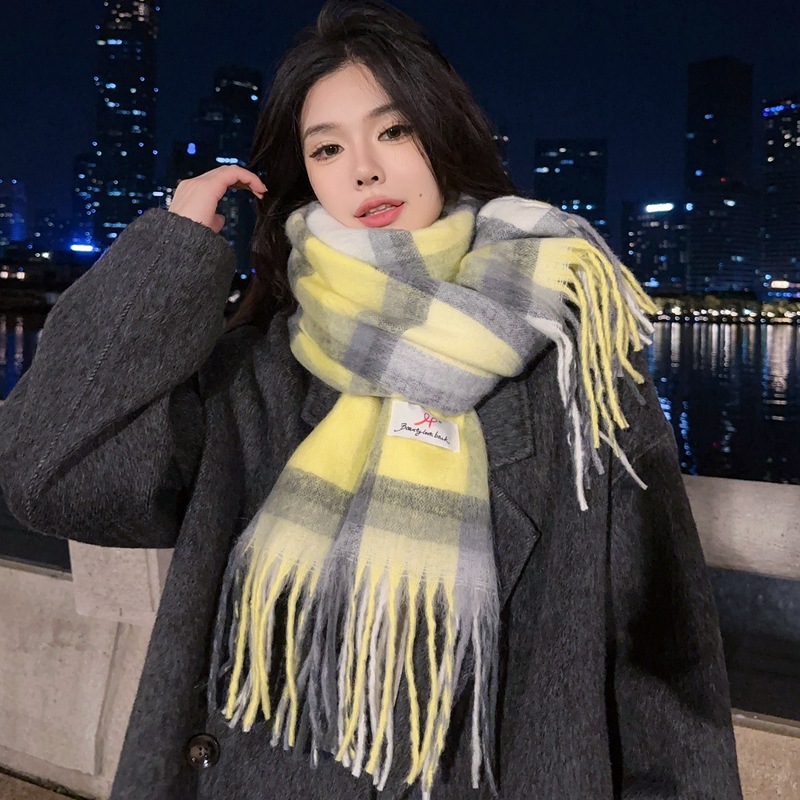 새로운 도착 달콤한 스카프 체크 무늬 컬러 매칭 스트라이프 작은 신선한 패션 따뜻한 술 목도리 한국 모헤어 스카프스토어 가기