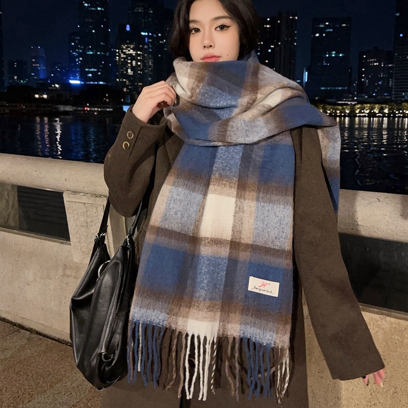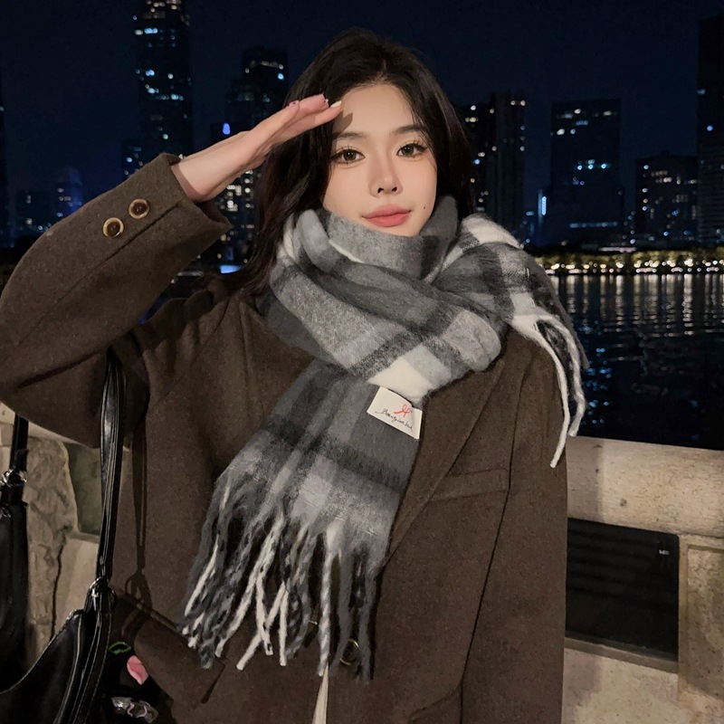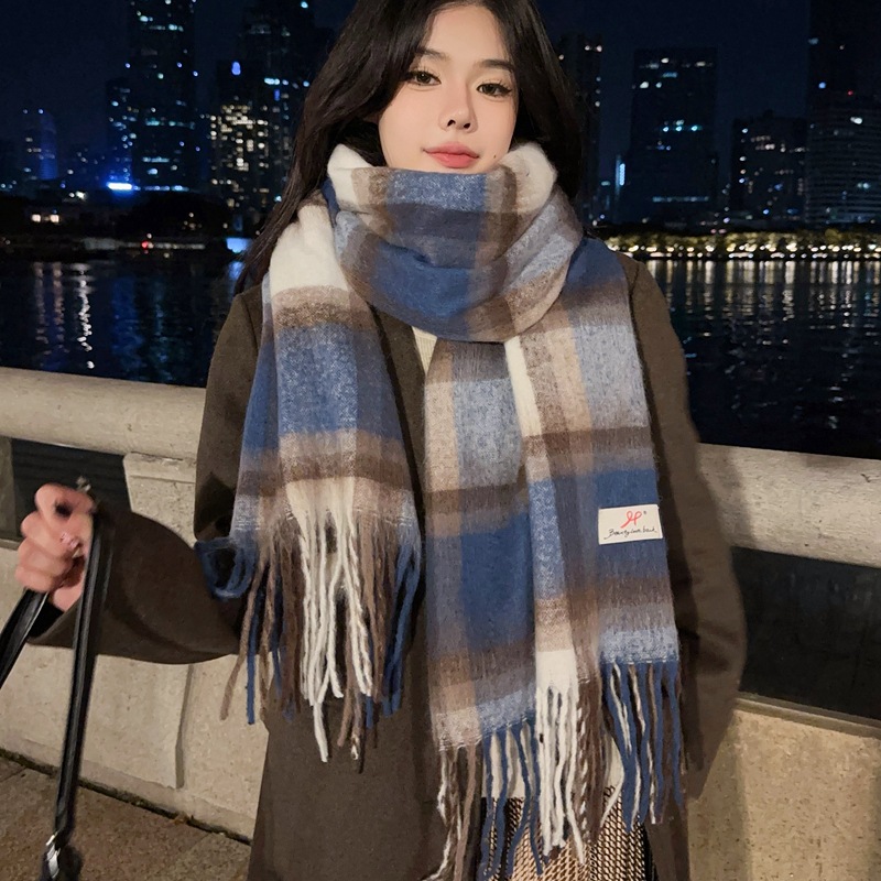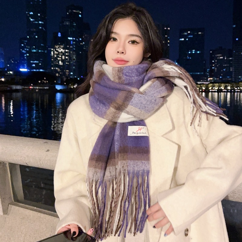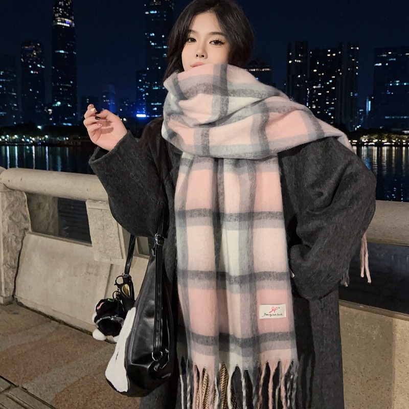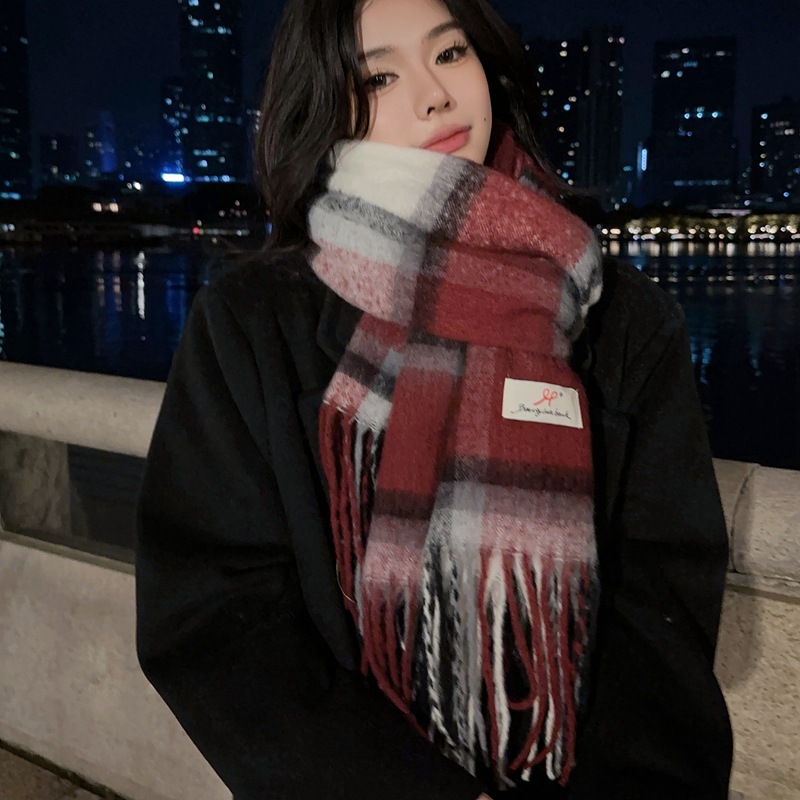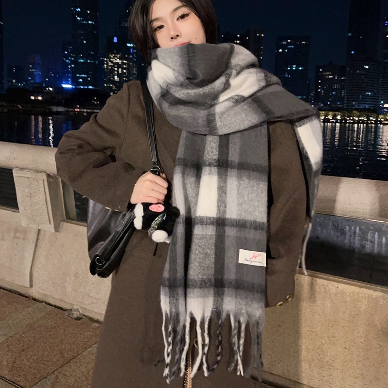 새로운 도착 달콤한 스카프 체크 무늬 컬러 매칭 스트라이프 작은 신선한 패션 따뜻한 술 목도리 한국 모헤어 스카프스토어 가기