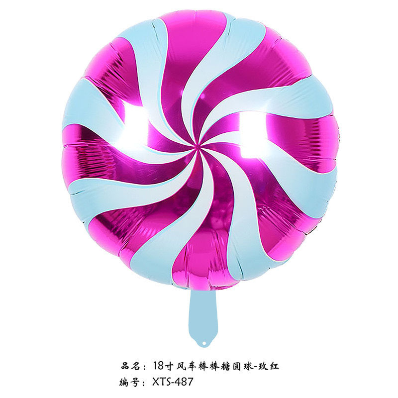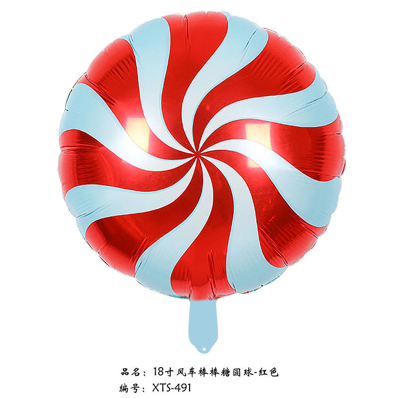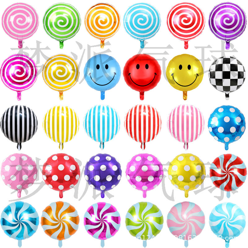 18inch 웃는 얼굴 공 풍차 롤리팝 빨간색과 흰색 줄무늬 둥근 알루미늄 필름 풍선 생일 파티 장식 풍선스토어 가기