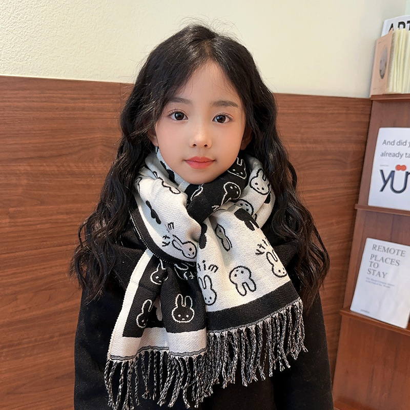 어린이용 겨울 만화 목도리 양면 모조 캐시미어 롱 스타일 두꺼운 보온 에어컨 방 겸용 숄 및 목도리