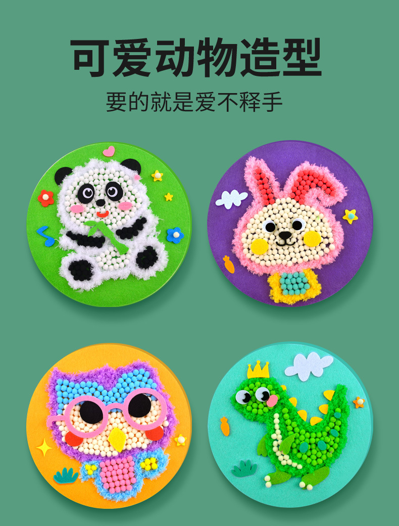 부직포 모피 볼 자수 어린이 창조적 인 장난감 유치원 붙여 넣기 그림 만화 재료 패키지스토어 가기