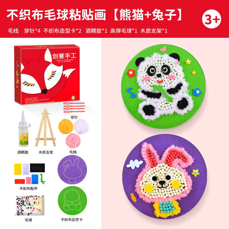 부직포 모피 볼 자수 어린이 창조적 인 장난감 유치원 붙여 넣기 그림 만화 재료 패키지