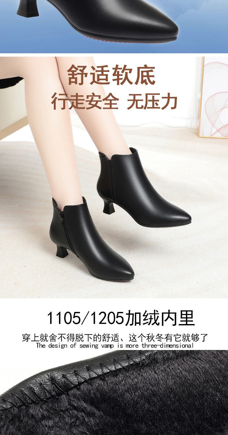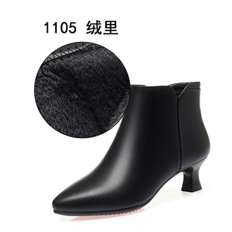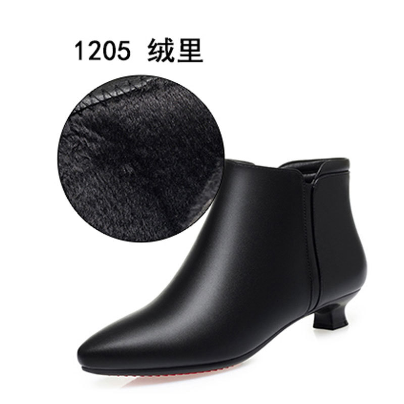 기모 두꺼운 하이힐 가죽 신발 작업 신발 여성 블랙 가죽 신발 작업복 전문 짧은 부츠 여성 부츠 여성 신발 가을과 겨울스토어 가기