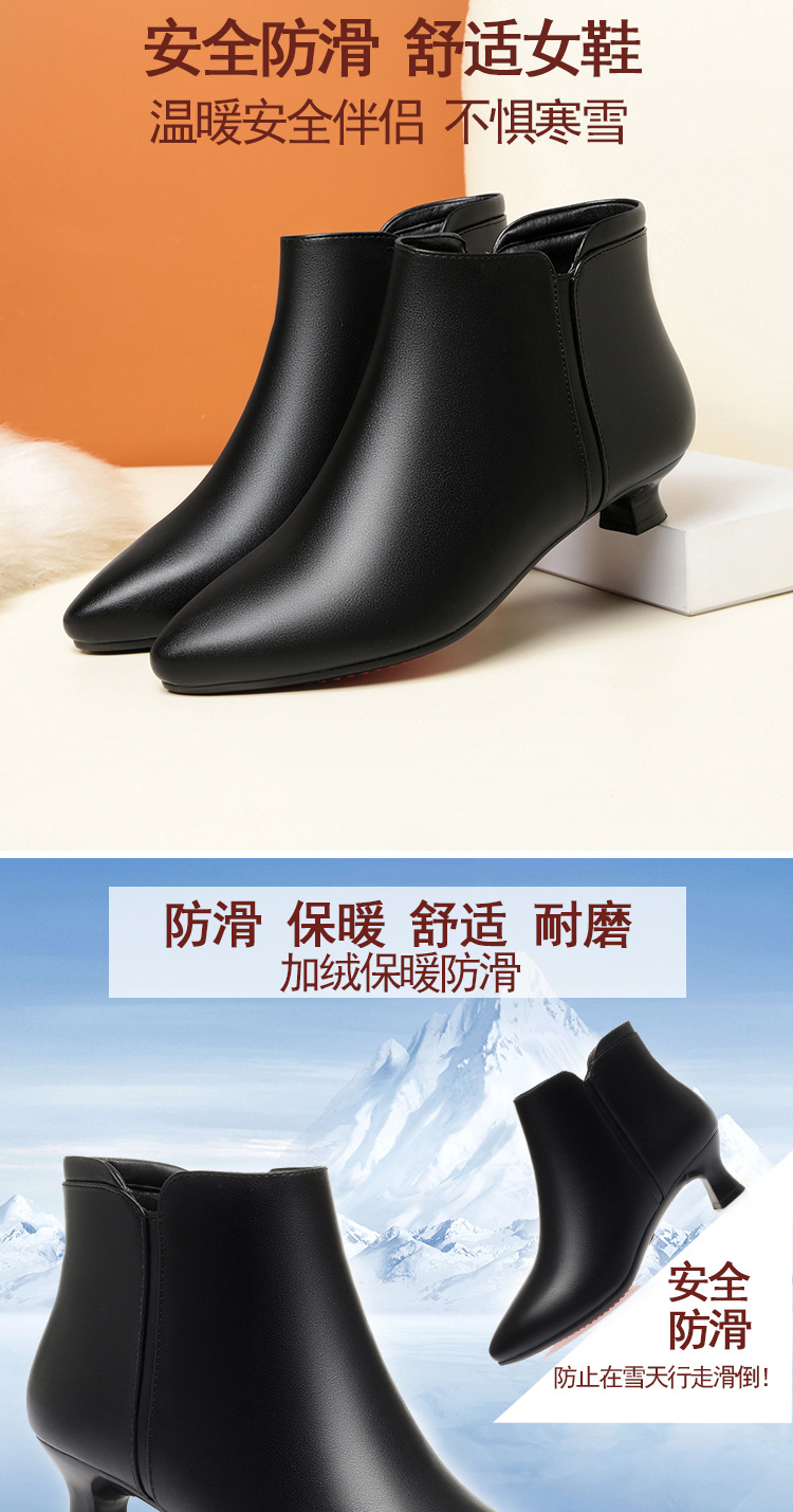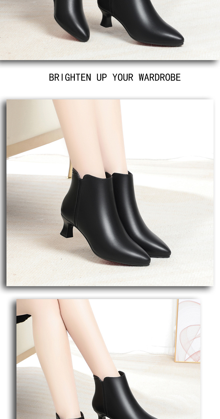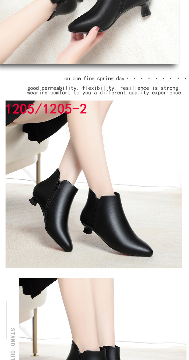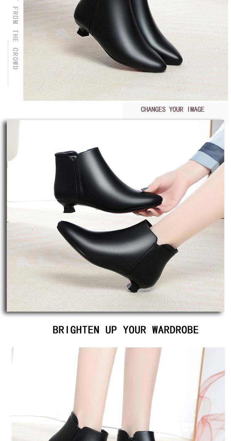 기모 두꺼운 하이힐 가죽 신발 작업 신발 여성 블랙 가죽 신발 작업복 전문 짧은 부츠 여성 부츠 여성 신발 가을과 겨울