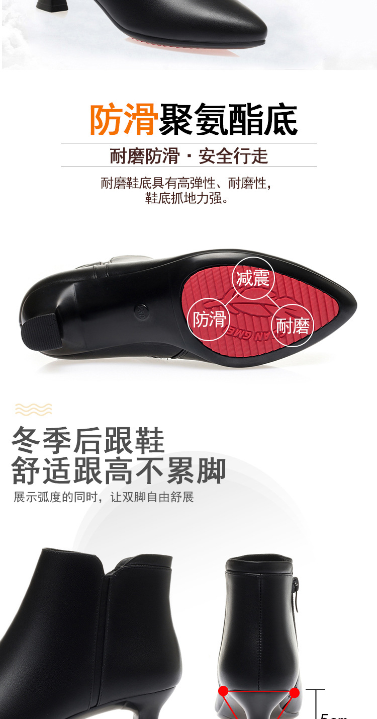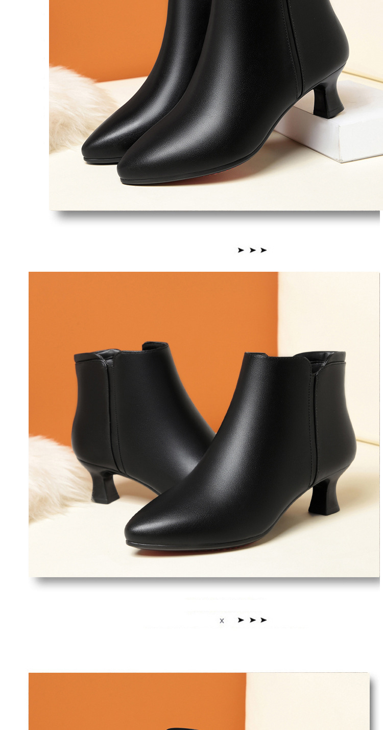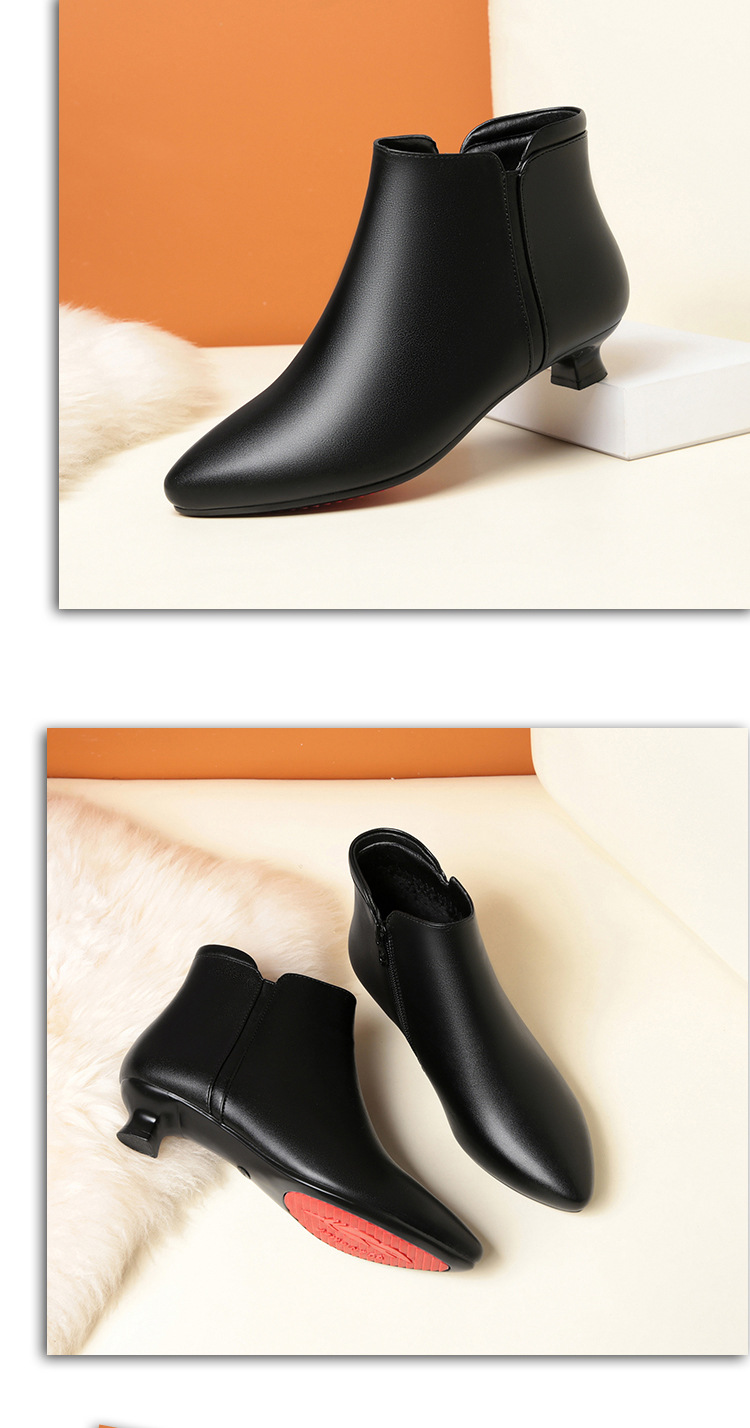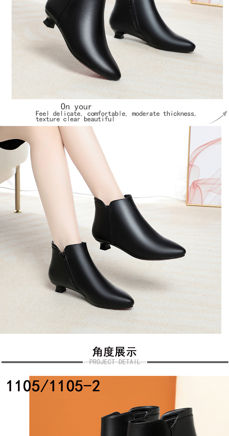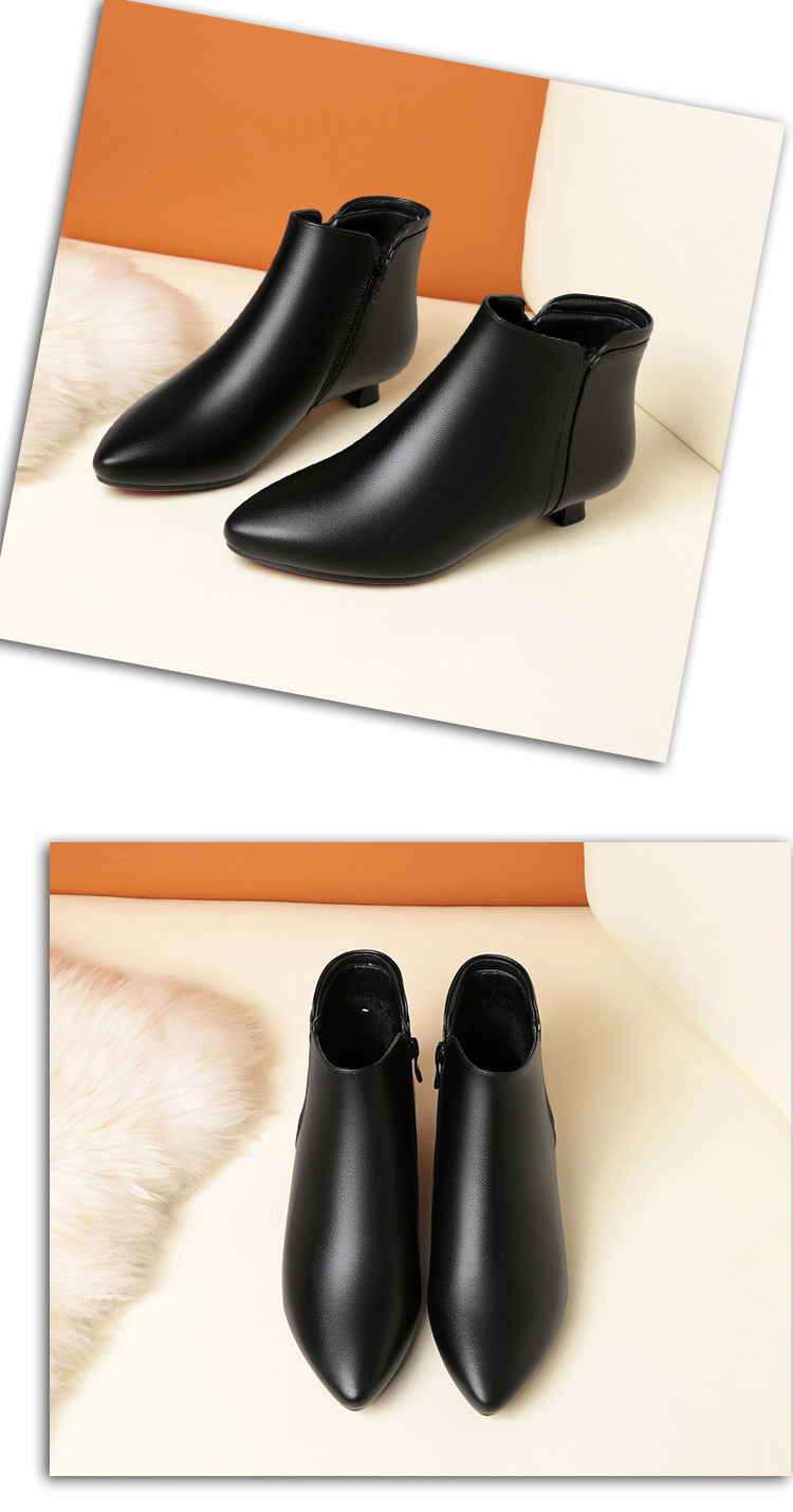 기모 두꺼운 하이힐 가죽 신발 작업 신발 여성 블랙 가죽 신발 작업복 전문 짧은 부츠 여성 부츠 여성 신발 가을과 겨울