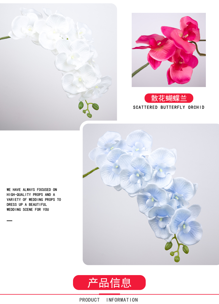 仿真花材假花红色拱门地排订婚路引蝴蝶兰插花森系花材婚庆单支