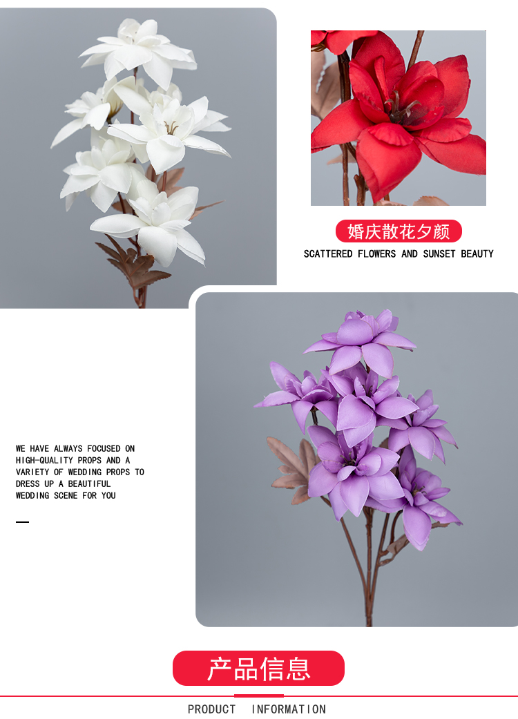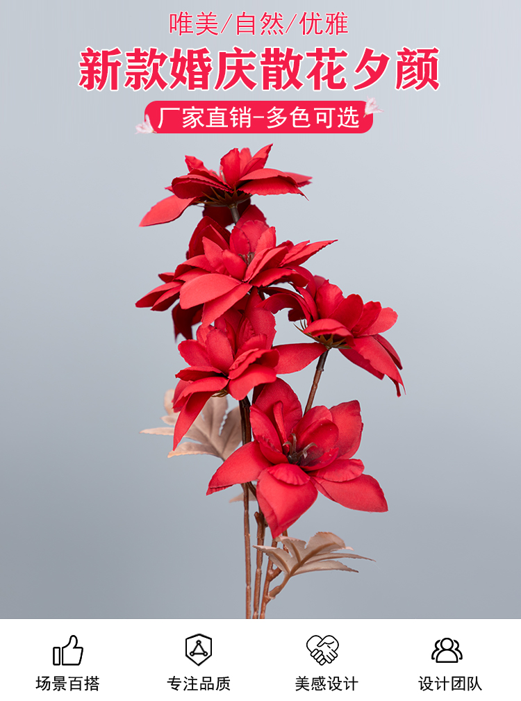 森系花材拱门地排订婚路引花夕颜花婚庆单支仿真花材假花红色插花