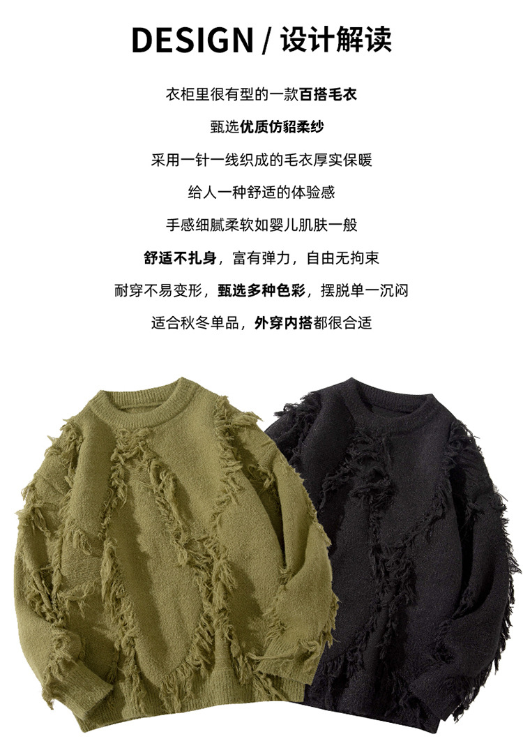 라운드넥 스웨터 남성용 2025 가을 겨울 레이지 스타일 풀오버 니트웨어 트렌디 브랜드 루즈핏 베이스 레이어 니트 상의 688P51