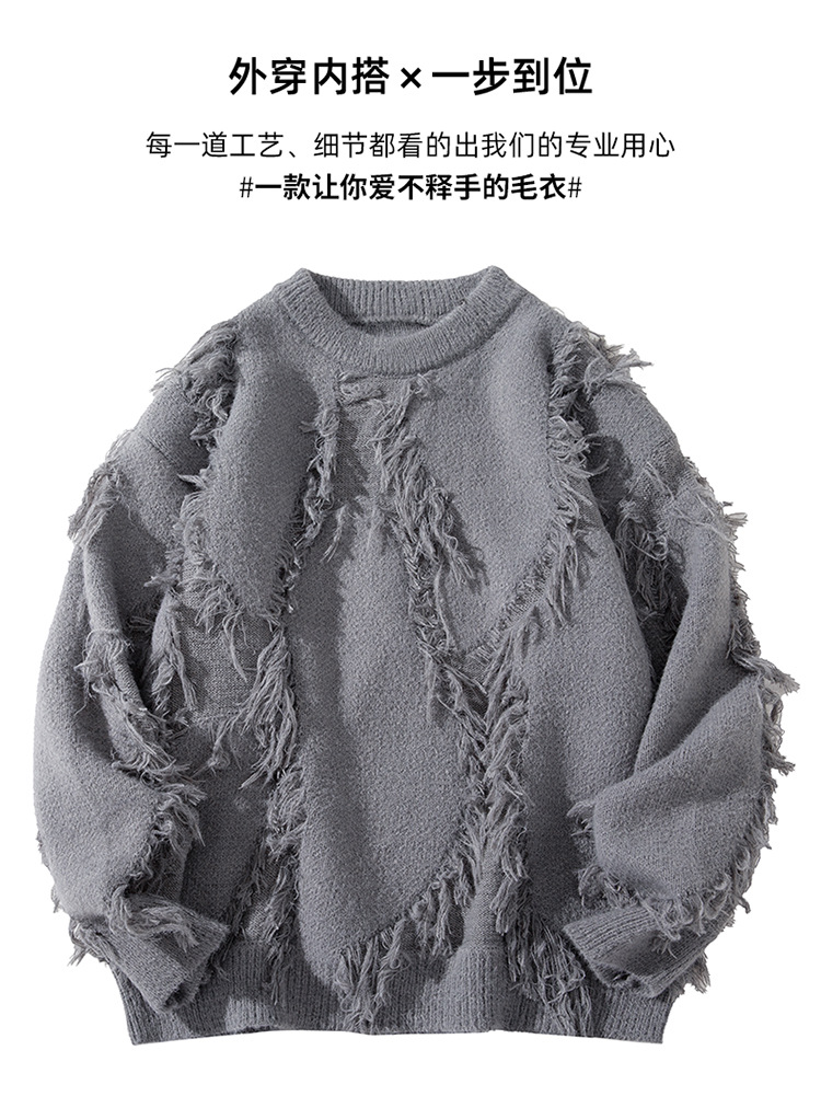 라운드넥 스웨터 남성용 2025 가을 겨울 레이지 스타일 풀오버 니트웨어 트렌디 브랜드 루즈핏 베이스 레이어 니트 상의 688P51스토어 가기