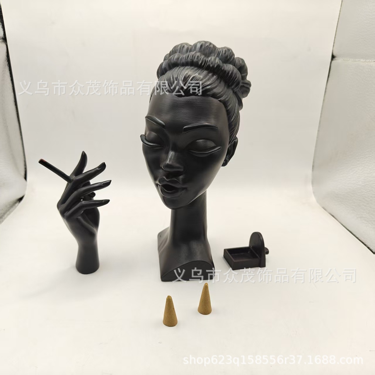 黑人香炉闭眼大号重量:24.5*10*14cm