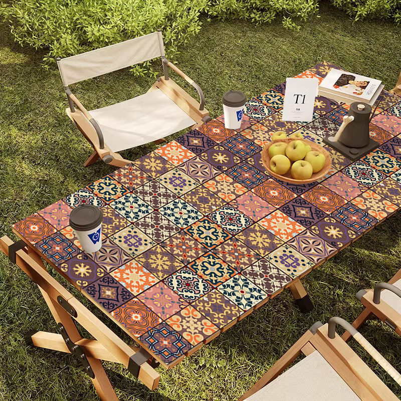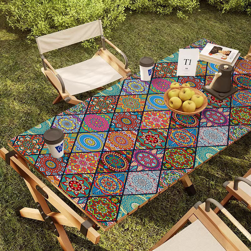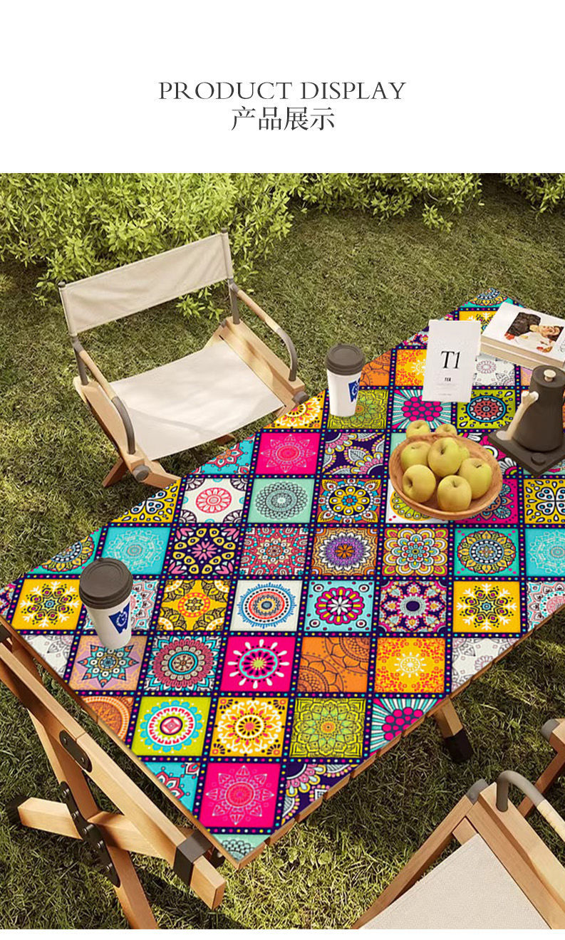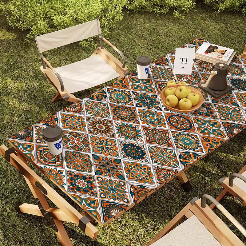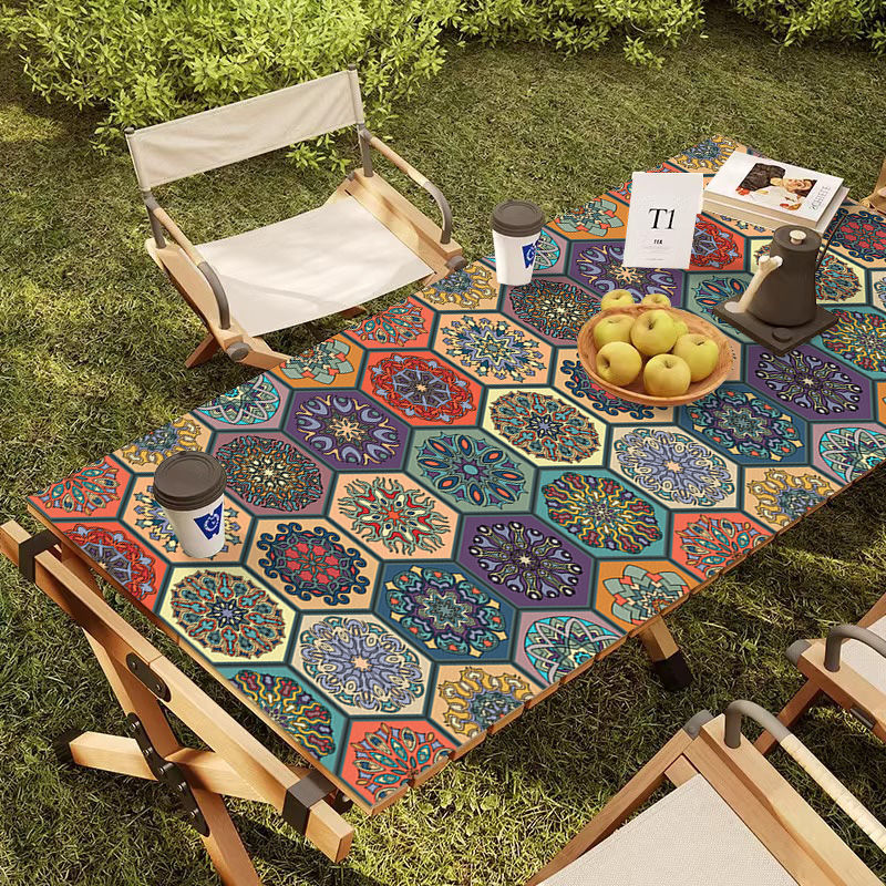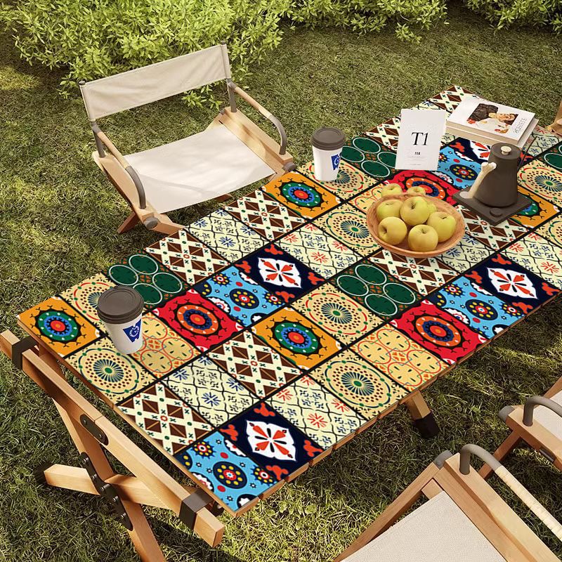 야외 캠핑 테이블보 보헤미안 스타일 세탁 불필요 캠핑용 자외선 차단 단열 매트 방수 방유 가죽 테이블 매트 식탁용