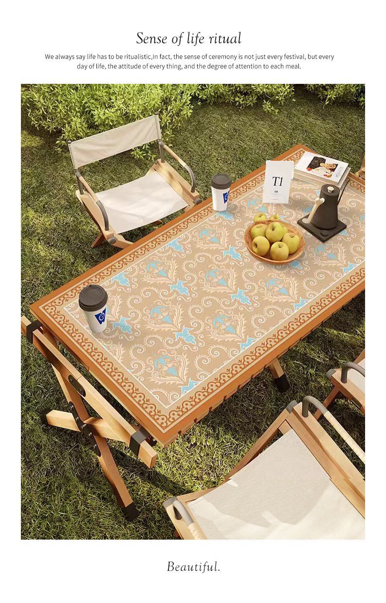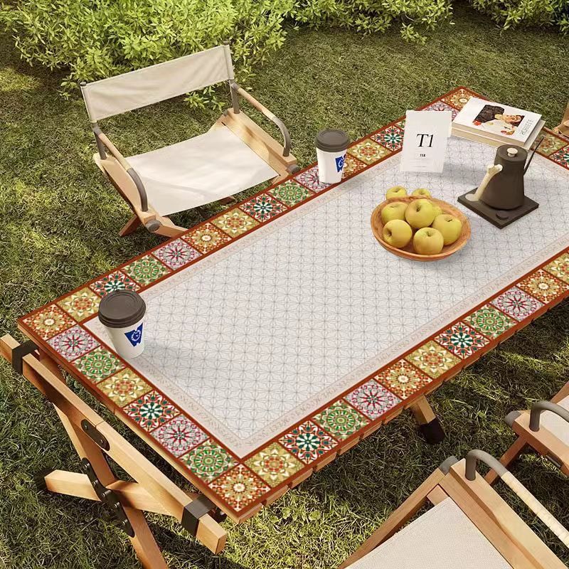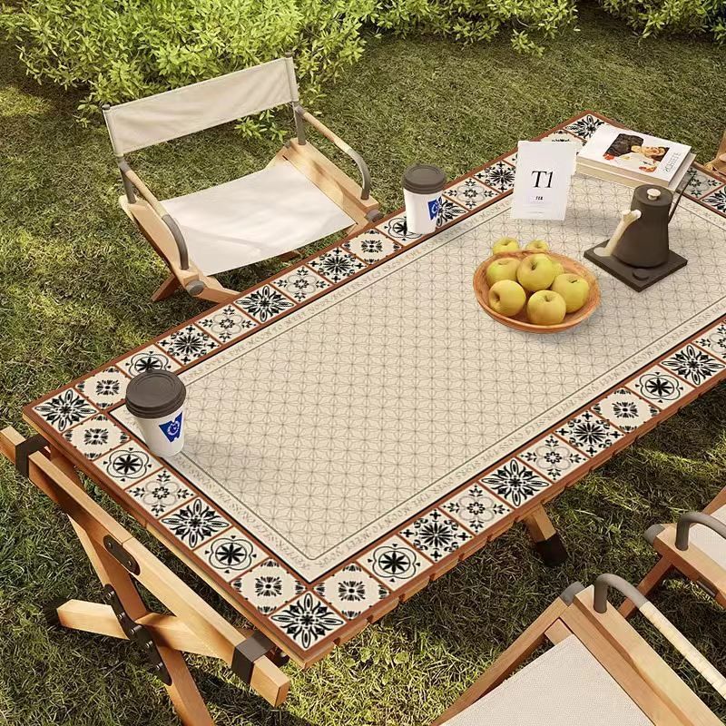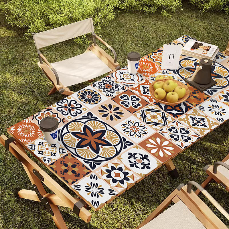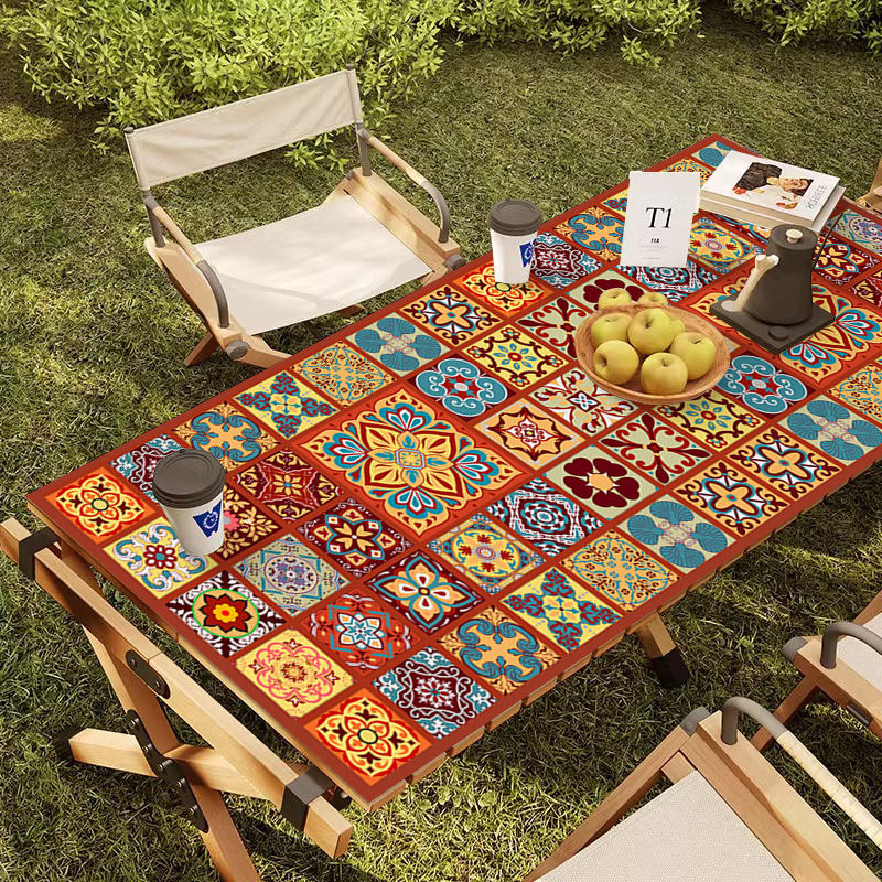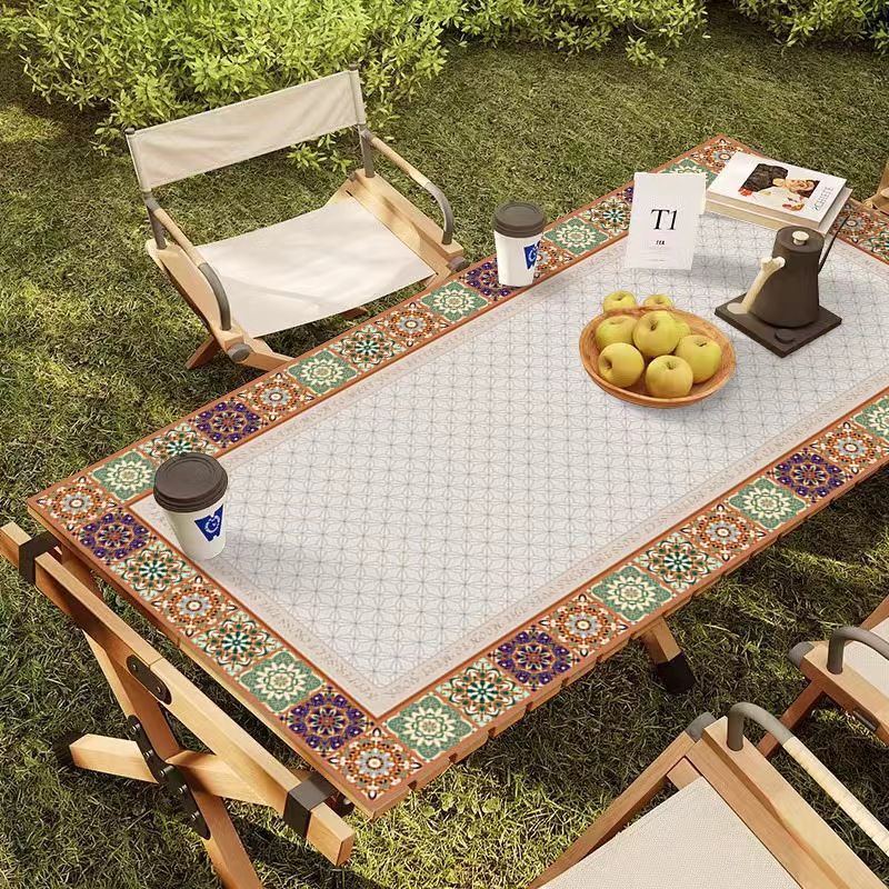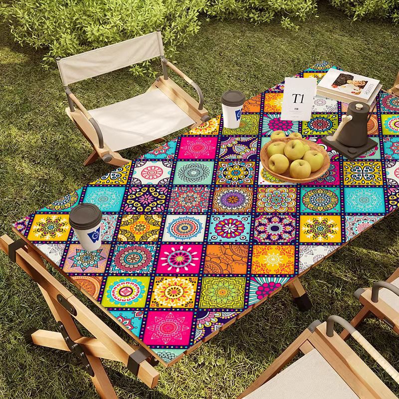 야외 캠핑 테이블보 보헤미안 스타일 세탁 불필요 캠핑용 자외선 차단 단열 매트 방수 방유 가죽 테이블 매트 식탁용