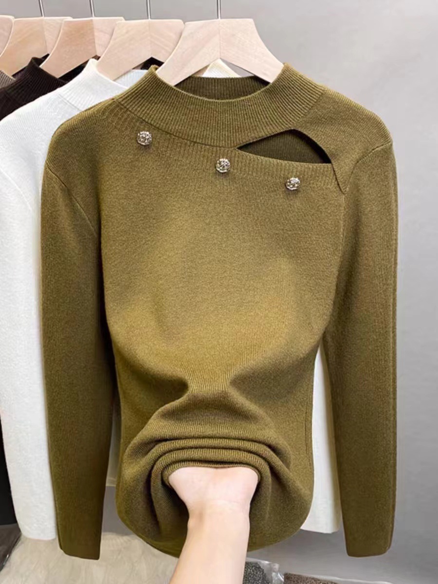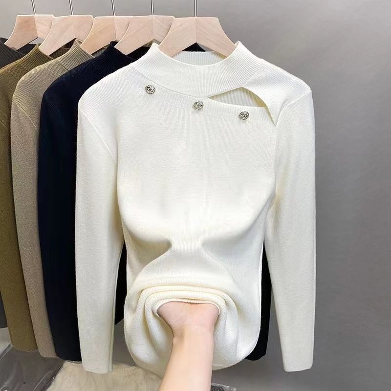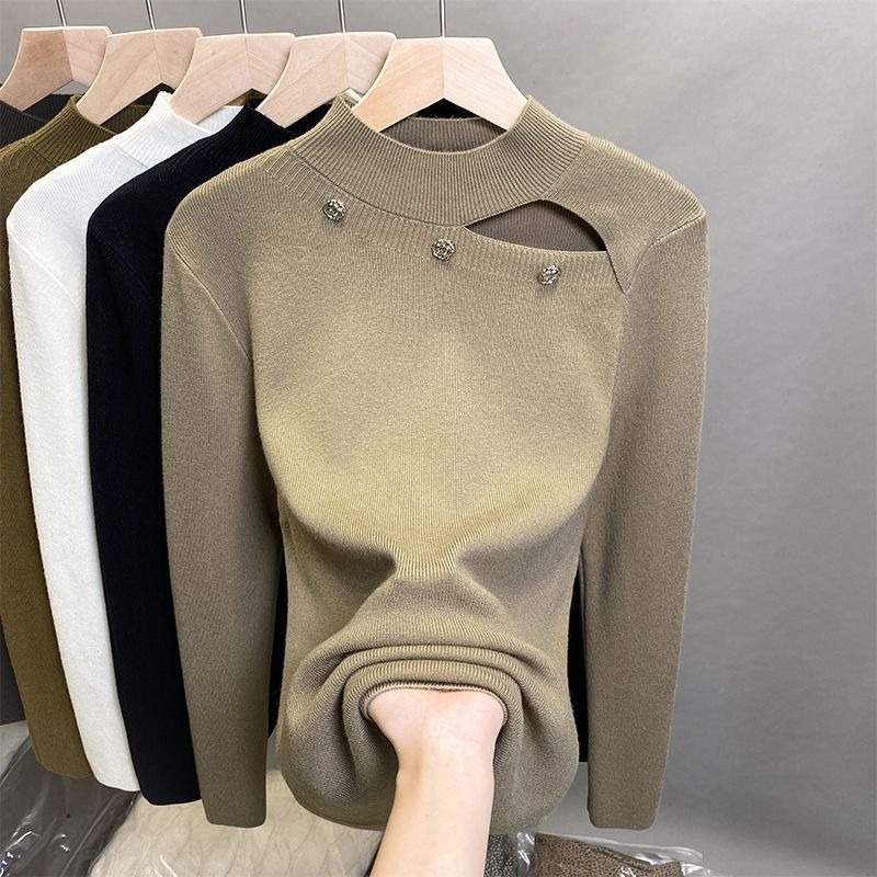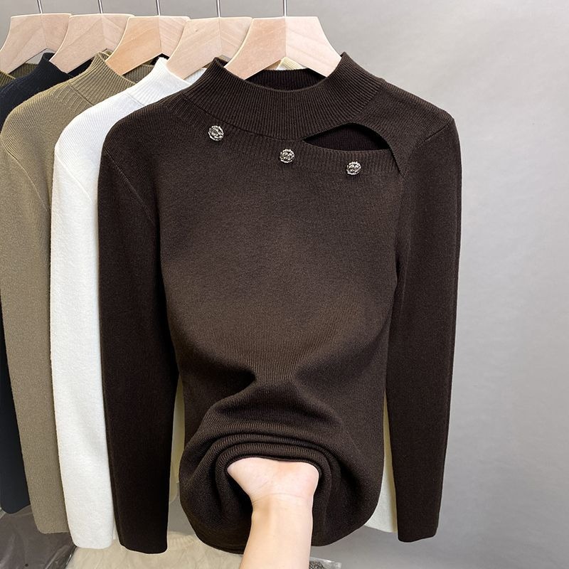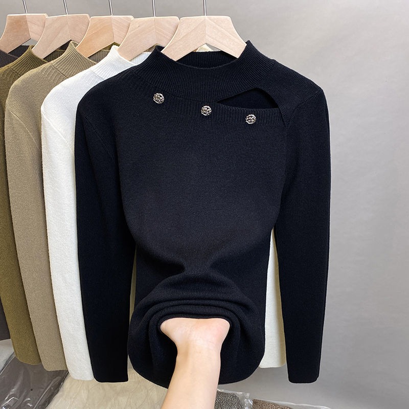 하프 터틀넥 스웨터 여성의 2024 가을과 겨울 새로운 풀오버 중공베이스 셔츠 겉옷 스웨터 내복 외국 스타일 탑
